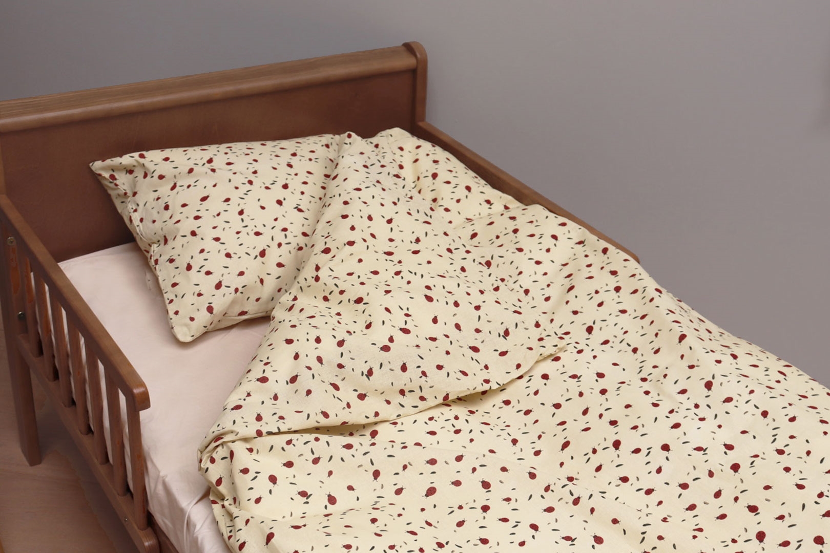 Forside » Sengetøj Junior sengetøj - 100% Blødt bomuld - 115x135 cm - Lysegult sengesæt med mariehøner til børn Spar35% By Mats 199,95129,95DKKSpar 70,- På lager Trustpilot Antal Læg i kurv Se mere fra: By Mats Artikelnummer: 12140-27 Læs vores sengetøjsguide Se vores store udvalg af lagner Se vores store udvalg af dyner 100x140 Har du spørgsmål til produktet? Motiv med nordisk inspiration100% blødt bomuld - åndbart og behageligtOEKO-TEX® Certificeret Dynebetræk: 115x135 cm (bemærk størrelse) Pudebetræk: 40x45 cm Materiale: 100% bomuld Farve: Gul Motiv: Mariehøner Lukning: Dyne med knapper og pudebetræk med overlap Vask: 60 grader Tørretumbling: Ja Tåler strygning: Ja (OBS: Bemærk størrelsen) Certificering: STANDARD 100 by OEKO-TEX® (2016OK0709) Skønt sengesæt med fint og unikt print til både piger og drenge. Sengetøjet er blødt og behageligt, så dit barn opnå en tryg og rolig søvn. Dette flotte allover print i dæmpede farver, vil pynte og være dekorativt på børneværelset. Dynebetrækket er nemt at håndtere med smarte trykknapper, mens pudebetrækket har en praktisk overlapning. Skab en drømmeverden med dette charmerende sengesæt – sovetid bliver nu en leg. Sengetøjet er lavet af 100% blødt bomuld. Bomuld er åndbart, blødt og behageligt mod barnets hud. Derudover er det nemt at vaske, hvilket er afgørende, når det kommer til sengetøj til børn, der ofte kan ende med at blive plettet. Et behageligt og hyggeligt sengetøj bidrager til at skabe en beroligende atmosfære, der fremmer en god nattesøvn. Du finder vores sortiment af kvalitets lagner her til børn her Vi har alt til at gøre ungernes værelse magisk og hyggeligt, hvor de for alvor kan fordybe sig i deres mange forskellige lege og for alvor slippe deres fantasi løs. Se vores udvalg til børneværelset her Tilbage til Sengetøj Måske er du også interesseret i: Junior sengetøj 100x140 cm - Blødt hvidt sengesæt i 100% egyptisk bomuldssatin - Turiform sengelinnedHøj kvalitet Ekstra fin, blød & åndbar Jacquardvævet Vejl. udsalgspris : 449,95 Spar : 204,95 499,95 DKK245,00 DKK Boxlagen 70x140 cm - Hvid - 100% ekstra fin bomuldssatin - Faconlagen til juniormadrasBoxlagen - Hvid 100% bomuldssatin 70x140x15 cm Vejl. udsalgspris : 349,95 Spar : 100,00 349,95 DKK249,95 DKK Junior rullemadras - 70x140 cm - Kogeægte Bomuld - Borg LivingÅndbart og allergivenlig Blødt bomuld OEKO-TEX® certificeret 349,95 DKK199,95 DKK Juniordyne - Moskusdun - 100x140 cm - Helårs junior dyne - Borg Living dundyne100% moskusdundyne Bæreevne: over 12 Helårsdyne Vejl. udsalgspris : 1.599,95 Spar : 1.104,95 1.599,95 DKK495,00 DKK