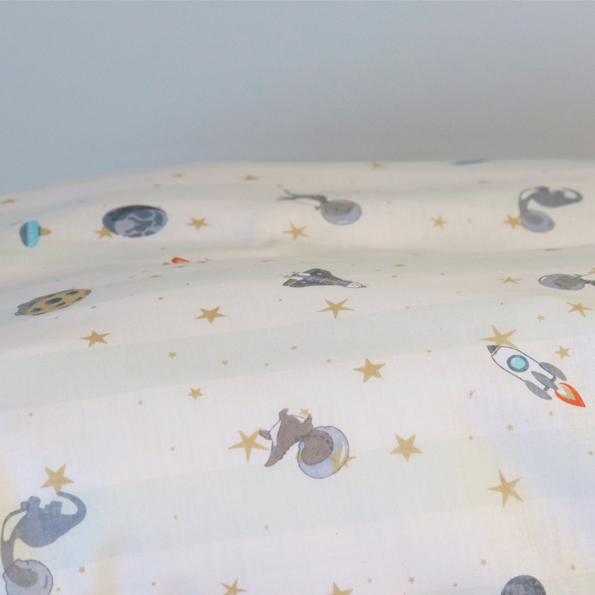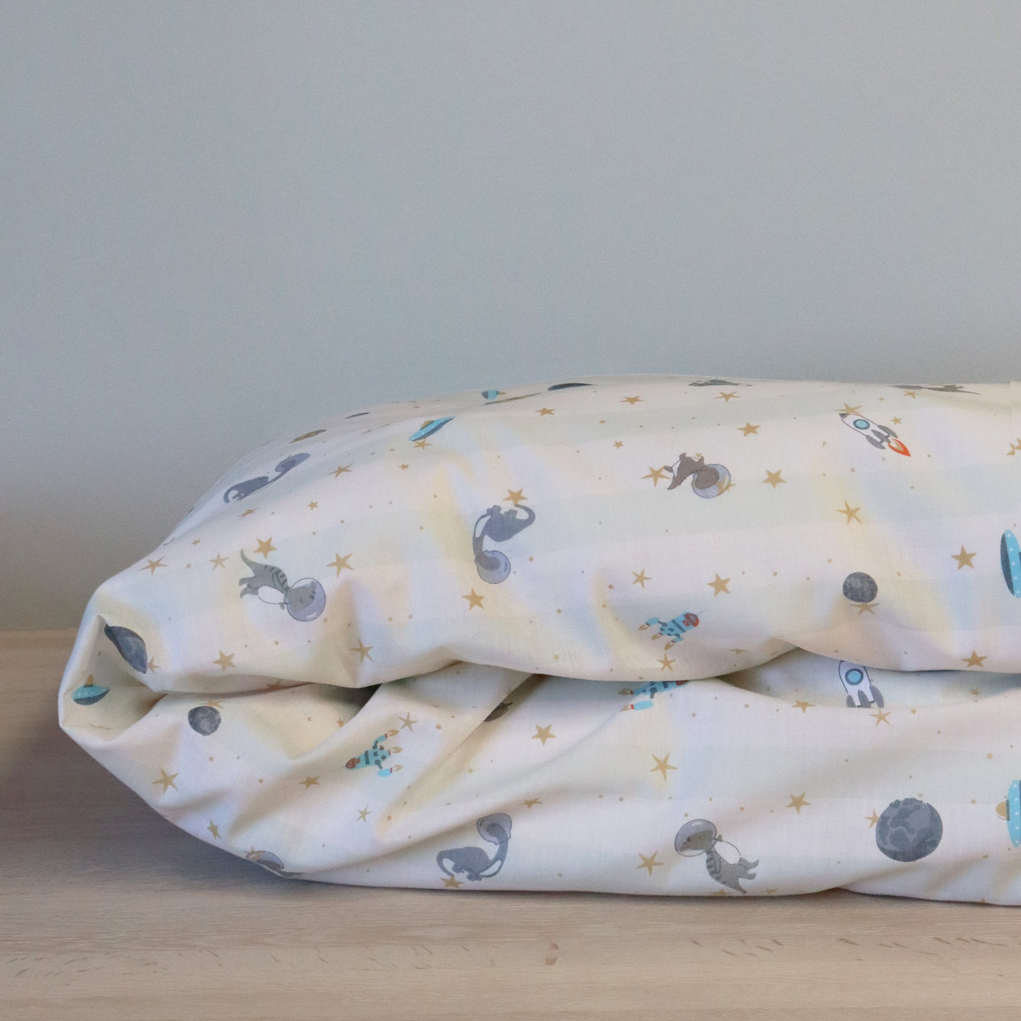Forside » Sengetøj » Børne sengetøj » Junior sengetøj 100x140 cm Junior sengetøj 100x140 cm - Hvidt stribet sengesæt med dinosaurer og rumraketter - 100% blødt bomulds sengelinned Spar35% By Mats 199,95129,95DKKSpar 70,- På lager Trustpilot Antal Læg i kurv Se mere fra: By Mats Artikelnummer: 12155-8 Læs vores sengetøjsguide Se vores store udvalg af lagner Se vores store udvalg af dyner 100x140 Har du spørgsmål til produktet? Høj åndbarhed100% blød bomuldOEKO-TEX® certificeret Dynebetræk: 100x140 cm - junior sengesæt Pudebetræk: 40x45 cm Materiale: 100% blød bomuld Farve: Hvid Motiv: Stribet med dinosaurer og rumraketter Lukning: Dyne med knapper og pudebetræk med overlap Vask: 60° Tørretumbling: Ja Tåler strygning: Ja Certificering: STANDARD 100 by OEKO-TEX® (2016OK0709 AITEX). Din garanti for at produktet er fri for sundhedsskadelig kemi. Blødt junior sengetøj i 100% bomuld, med dinosaurer og rumraketter. Produceret med lette og åndbare bomuldstråde som giver sengesættet en følelse af blødhed, der gør at dynen føles dejlig for dit barn at sove med. Balancen i naturlig egenskaber og komfort fra det bløde materiale, kombineret med det hyggelige design, gør dette sæt til en sikker favorit hos dit barn. Flot stribet junior sengesæt med et all-over print af dinosaurer og rumraketter, som ikke bare er blødt og behageligt, men også vil pynte og være dekorativt på børneværelset. Sengesættet er produceret i 100% bomuld som gør sættet slidestærkt, blødt og giver høj absorbering samt åndbarhed. Den rene bomuldskvalitet giver et lækkert og blødt sengesæt, som ovenikøbet er let at vedligeholde og skaber et dejligt sovemiljø for dit barn. Bomuldssengetøj kan vaskes ved 60° i vaskemaskinen, som er også et med til at holde et et højt hygiejne niveau. Sengetøjet er yderligere fremstillet med OEKO-TEX certificeret, hvilke er din garanti for at sættet er fri for skadelig kemi. Gå på udkig efter favoritterne og meget mere, i vores store udvalg af tilbehør til børneuniverset For barnet bør sengen være et trygt sted og alle elementerne skal til sammen skabe bløde og dejlige omgivelser for barnet at finde ro i. Brug derfor gerne barnets interesser, til at skabe et trygt soverum for barnet. Hos os kan du finde et stort udvalg af tilbehør til sengen og børneværelset, lige fra lagner til dyner, puder, sengetøj og meget mere, og massere af produkter med alle børnenes favoritter på. Alt sammen elementer som kan være med til at skabe det rette sove miljø og værelse til dit barn. Her kan du finde lækre og bløde kvalitets lagner Tilbage til Junior sengetøj 100x140 cm Måske er du også interesseret i: Junior sengetøj 100x140 cm - Blødt hvidt sengesæt i 100% egyptisk bomuldssatin - Turiform sengelinnedHøj kvalitet Ekstra fin, blød & åndbar Jacquardvævet Vejl. udsalgspris : 449,95 Spar : 204,95 499,95 DKK245,00 DKK Boxlagen 70x140 cm - Hvid - 100% ekstra fin bomuldssatin - Faconlagen til juniormadrasBoxlagen - Hvid 100% bomuldssatin 70x140x15 cm Vejl. udsalgspris : 349,95 Spar : 100,00 349,95 DKK249,95 DKK Junior rullemadras - 70x140 cm - Kogeægte Bomuld - Borg LivingÅndbart og allergivenlig Blødt bomuld OEKO-TEX® certificeret 349,95 DKK199,95 DKK Juniordyne - Moskusdun - 100x140 cm - Helårs junior dyne - Borg Living dundyne100% moskusdundyne Bæreevne: over 12 Helårsdyne Vejl. udsalgspris : 1.599,95 Spar : 1.104,95 1.599,95 DKK495,00 DKK