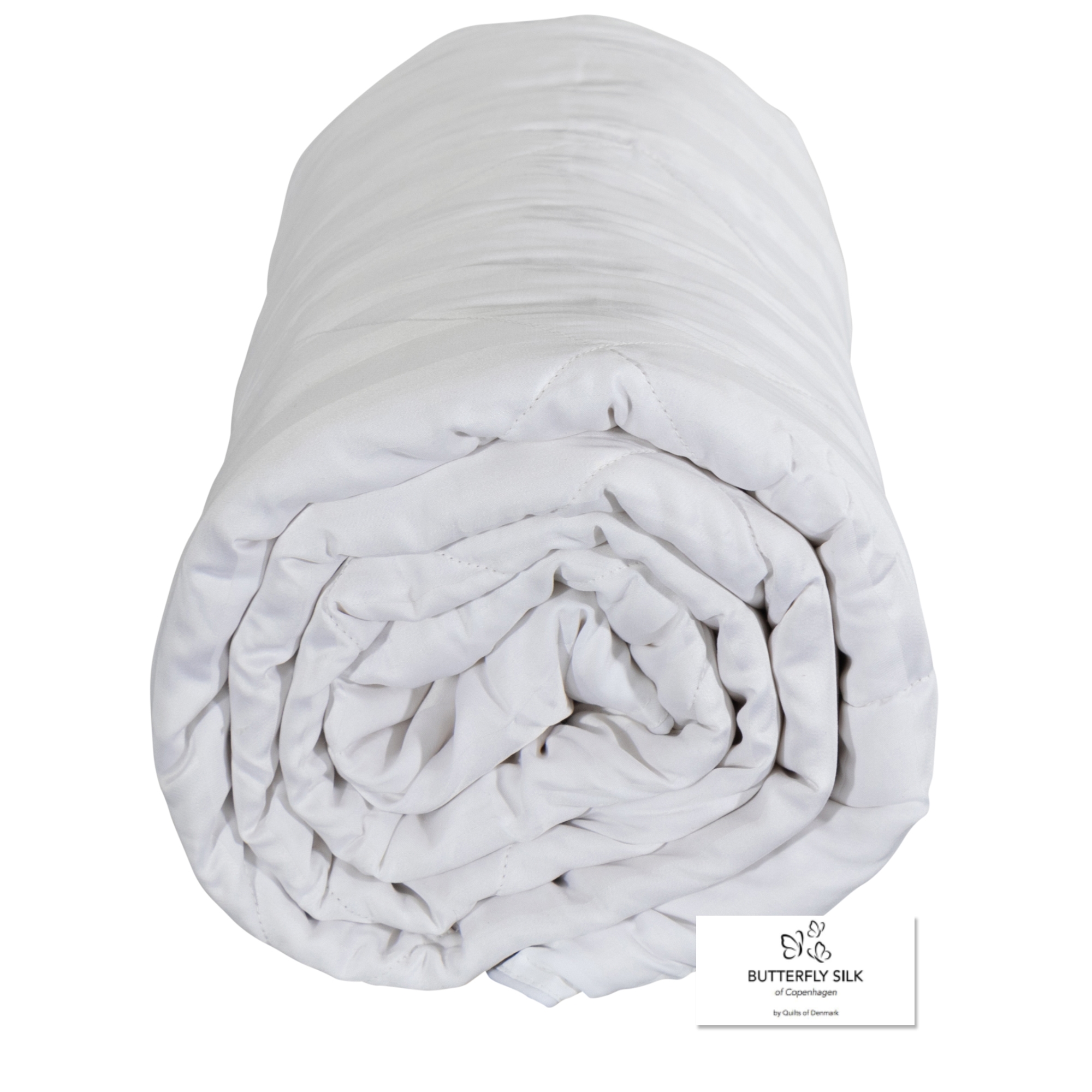 Butterfly Silk er et dansk brand med et stort udvalg, i de lækreste silkeprodukter. Silkedynerne kommer i mange udgaver, alle med 100% morbær silkefyld, så der er en dyne der matcher lige præcis det behov du har. Om det er en almindelig silkedyne, luksus silkedynen eller den ekstra åndbare bambus/silke serie, så finder du det fra Butterfly Silk.