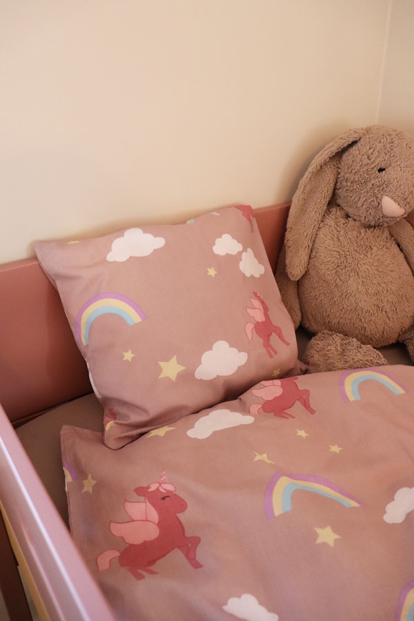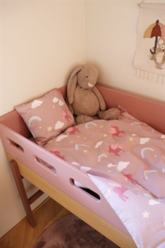 Forside » Sengetøj » Børne sengetøj » Junior sengetøj 100x140 cm Juniorsengetøj 100x140cm - OEKO-TEX® Certificeret - Enhjørninger og regnbuer - 100% bomulds sengesæt Spar59% Borg Living 349,95145,00DKKSpar 205,- Få på lager Trustpilot Antal Læg i kurv Se mere fra: Borg Living Artikelnummer: 1900-8 Læs vores sengetøjsguide Se vores store udvalg af lagner Se vores store udvalg af dyner 100x140 Har du spørgsmål til produktet? Junior sengetøj100% blødt bomuldOEKO-TEX® Certificeret Dynebetræk: 100x140 cm - junior sengesæt Pudebetræk: 40x45 cm Materiale: 100% blød bomuld Vævning: Ekstra fin 230TC (Thread count = antal tråde pr. kvadrattomme) Farve: Lilla Motiv: Enhjørninger og regnbuer Lukning: Dyne med trykknapper, pudebetræk med overlap Vask: 60° Tørretumbling: Ja Tåler strygning: Ja Certificering: STANDARD 100 by OEKO-TEX® (2016OK0 709 AITEX). Din garanti for at produktet er fri for sundhedsskadelig kemi. Blødt sengetøj i 100% bomuld, med design af enhjørninger og regnbuer. Produceret med lette og åndbare bomuldstråde som giver sengesættet en følelse af blødhed, der gør at dynen føles dejlig for dit barn at sove med. Balancen i naturlig egenskaber og komfort fra det bløde materiale, kombineret med det hyggelige design, gør dette sæt til en sikker favorit hos dit barn. Junior sengesæt med et fint print af skønne enhjørninger, skyer og regnbuer på en lilla baggrund. Det skaber en eventyrlig atmosfære på børneværelset og inviterer til masser af hyggestunder. Sengesættet er produceret i 100% bomuld som gør sættet slidestærkt, blødt og giver høj absorbering samt åndbarhed. Den rene bomuldskvalitet giver et lækkert og blødt sengesæt, som ovenikøbet er let at vedligeholde og skaber et dejligt sovemiljø for dit barn. Bomuldssengetøj kan vaskes ved 60° i vaskemaskinen, som er også et med til at holde et et højt hygiejne niveau. Sengetøjet er yderligere fremstillet med OEKO-TEX certificeret, hvilke er din garanti for at sættet er fri for skadelig kemi. Gå på udkig efter favoritterne og meget mere, i vores store udvalg af tilbehør til børneuniverset For barnet bør sengen være et trygt sted og alle elementerne skal til sammen skabe bløde og dejlige omgivelser for barnet at finde ro i. Brug derfor gerne barnets interesser, til at skabe et trygt soverum for barnet. Hos os kan du finde et stort udvalg af tilbehør til sengen og børneværelset, lige fra lagner til dyner, puder, sengetøj og meget mere, og massere af produkter med alle børnenes favoritter på. Alt sammen elementer som kan være med til at skabe det rette sove miljø og værelse til dit barn. Her kan du finde lækre og bløde kvalitets lagner Tilbage til Junior sengetøj 100x140 cm Måske er du også interesseret i: Junior sengetøj 100x140 cm - Blødt hvidt sengesæt i 100% egyptisk bomuldssatin - Turiform sengelinnedHøj kvalitet Ekstra fin, blød & åndbar Jacquardvævet Vejl. udsalgspris : 449,95 Spar : 204,95 499,95 DKK245,00 DKK Boxlagen 70x140 cm - Hvid - 100% ekstra fin bomuldssatin - Faconlagen til juniormadrasBoxlagen - Hvid 100% bomuldssatin 70x140x15 cm Vejl. udsalgspris : 349,95 Spar : 100,00 349,95 DKK249,95 DKK Junior rullemadras - 70x140 cm - Kogeægte Bomuld - Borg LivingÅndbart og allergivenlig Blødt bomuld OEKO-TEX® certificeret 349,95 DKK199,95 DKK Juniordyne - Moskusdun - 100x140 cm - Helårs junior dyne - Borg Living dundyne100% moskusdundyne Bæreevne: over 12 Helårsdyne Vejl. udsalgspris : 1.599,95 Spar : 1.104,95 1.599,95 DKK495,00 DKK