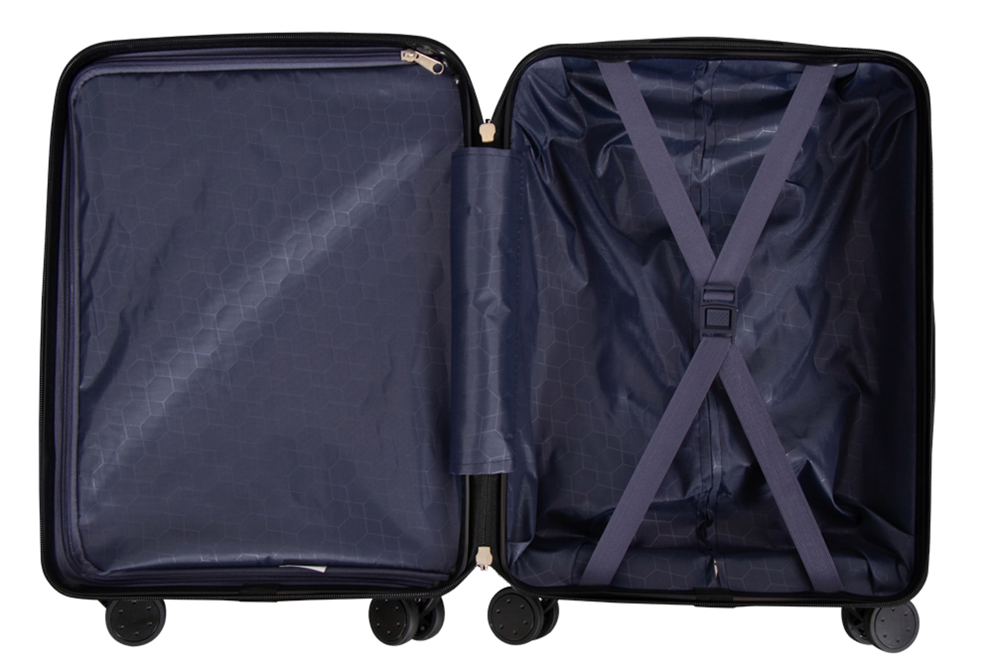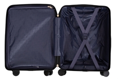 Kufferten er mindst lige så funktionel indeni som udenpå. Kufferten kan nemlig deles op i to separate rum. Det ene rum er med justerbare krydsstropper til tøjet, så det bliver liggende pænt i kufferten. Det andet rum kan lukkes med lynlås, så du undgår løse genstande der rutsjer rundt oven i alt tøjet - nemmere bliver det ikke!