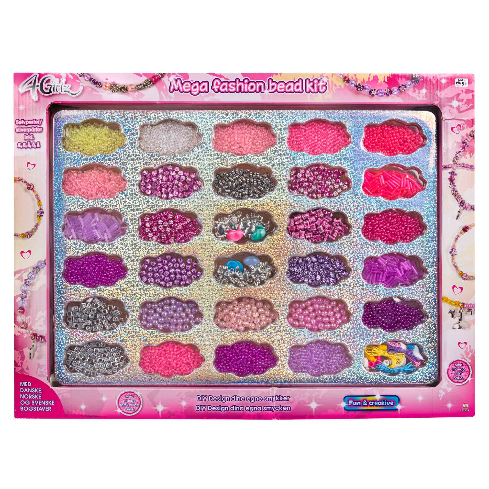Kæmpe perlesæt. Gavesæt med masser af flotte perler, vedhæng og snore så du kan lave de flotteste smykker.