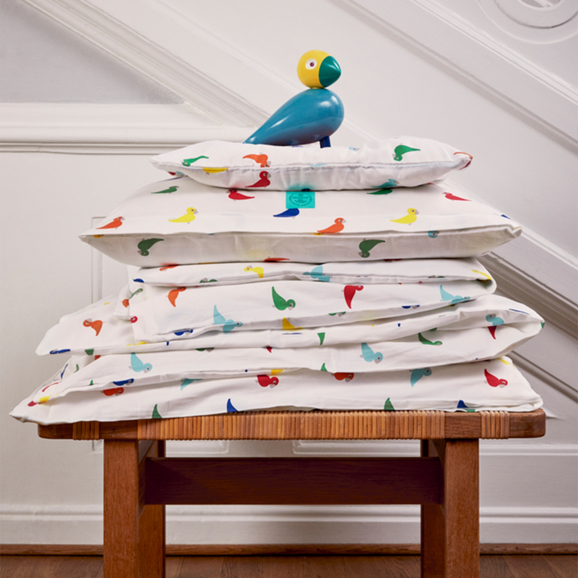 Kay Bojesen baby sengetøj - økologisk sengesæt med farverige sangfugle