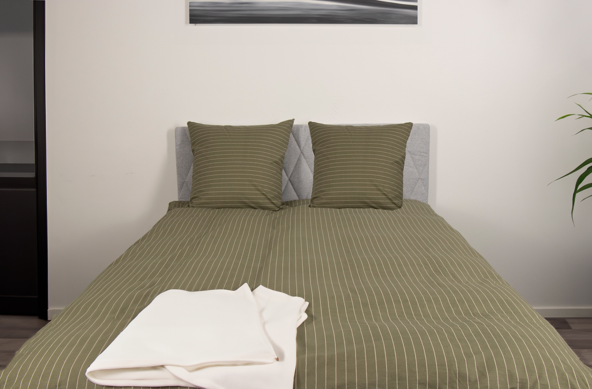 Forside » Sengetøj King size sengetøj 100% bomuld - 240x220 cm - Grøn stribet sengesæt - Nordstrand Home - Dynebetræk i 100% bomuld 2 x PudebetrækSpar59% Nordstrand Home 899,95369,95DKKSpar 530,- På lager Trustpilot Antal Læg i kurv Se mere fra: Nordstrand Home Artikelnummer: 2222-6 Læs vores sengetøjsguide Se vores store udvalg af lagner Se vores store udvalg af dyner 200x220 Har du spørgsmål til produktet? Blødt behageligt sengetøjDansk designOEKOTEX Kontrolleret og godkendt Dynebetræk: 240x220 cm Pudebetræk: 2 stk. á 60x63 cm Materiale: 100% blødt bomuld Vævning: 170 TC Percale vævning (Thread count = antal tråde pr. kvadrat tomme) Farve: Grøn Design: Stribet Brand: Nordstrand Home Lukning: Dyne- og pudebetræk med lynlås Vask: 60° Tørretumbling: Ja Tåler strygning: Ja Certificering: STANDARD 100 by OEKO-TEX® (2023OK2234) Nordstrand Home sengesæt er blødt og behageligt og fremstillet i 100% blødt og tætvævet bomuldspercale. Den tættere vævning giver et mere klart udtryk, samtidigt med at sengetøjet er blødt og dejligt. Sengetøjet har en stor slidstyrke og holder på farven efter gentagne vaske. Sengetøjet er OEKOTEX certificeret. Det er din garanti for at sengetøjet er testet og fri for skadelige stoffer, desuden er sengetøjet allergivenligt og kan vaskes på 60 grader. Dyne og pudebetræk lukkes med indvendig lynlås. Køb let pudebetræk til dine ekstra puder her Med Nordstrand Home er du sikret boligtekstiler i dansk design - i nordisk stil. Nordstrand Home lægger stor vægt på følelsen af velvære i et flot, men samtidig, afslappende miljø. Med Nordstrand Home behøver du ikke gå på kompromis, du finder altid produkter i klassiske og moderigtige farver. Nordstrand Home – Så føler du dig hjemme! Frisk sengen og soveværelset op med et flot og lækkert sæt sengetøj som dette. Benyt samtidig muligheden for at sikre dig maximal sovekomfort, ved at tilføje et nyt blødt lagen af høj kvalitet. Du finder vores store sortiment af kvalitets lagner her Tilbage til Sengetøj