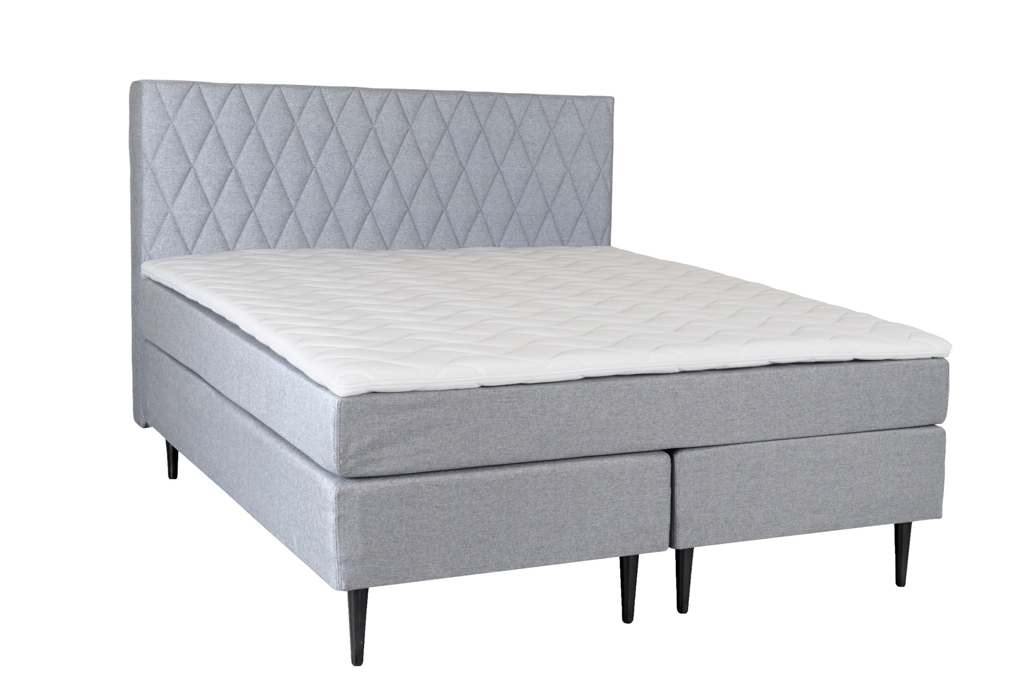 Den tilhørende springmadras på 180x200 cm leveres som 2x90 cm. Coveret kommer i ét helt stykke, lige til at fastgøre udover madrasserne. Herved holdes madrasserne samlet og du opnår det endelig mål på 180 cm.