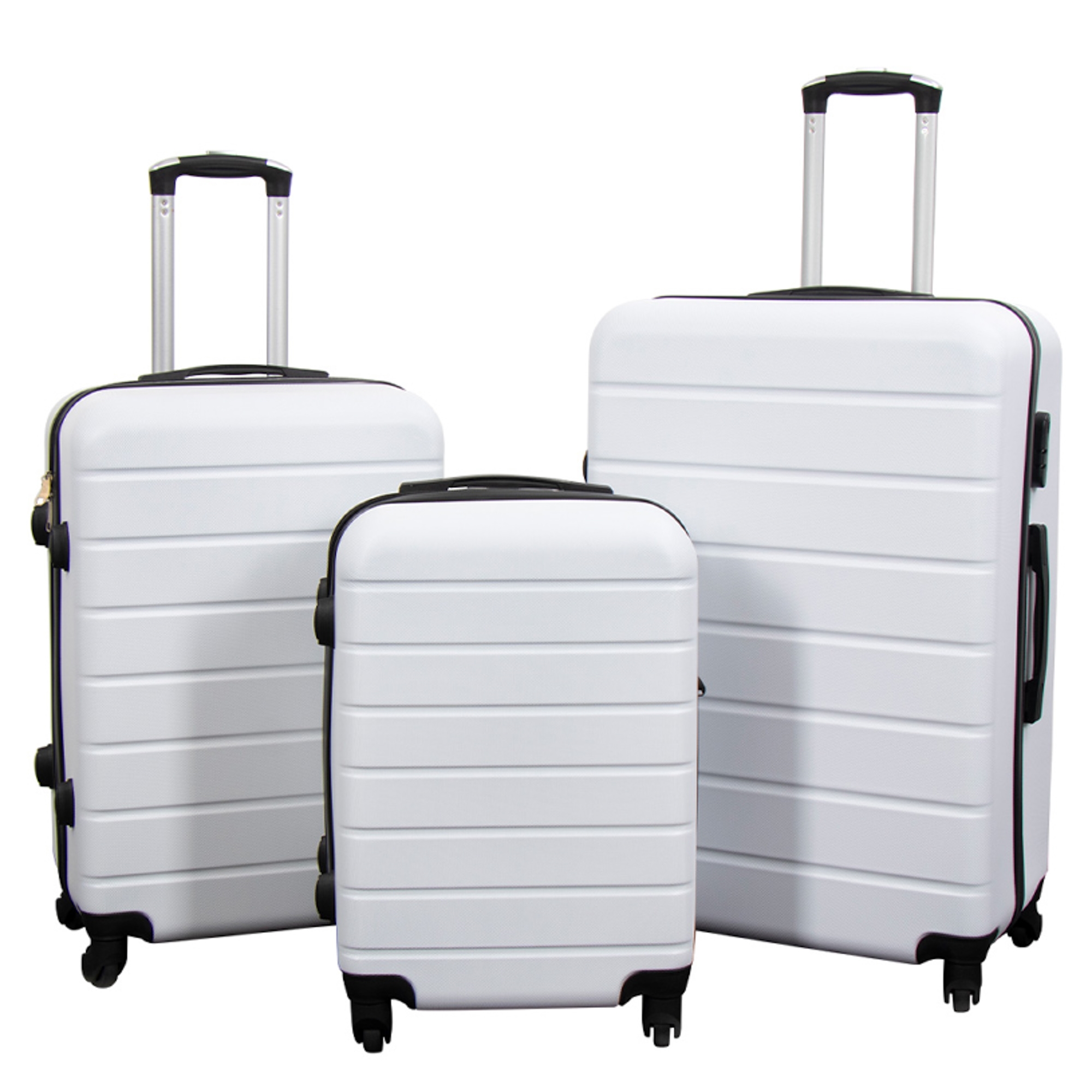 Forside » Kufferter Kuffert tilbud - Sæt med 3 stk. - Eksklusivt hardcase kuffertsæt - Strib Hvid Spar52% Borg Living 2.699,951.299,95DKKSpar 1.400,- Gratis fragt på denne varePå lager Trustpilot Antal Læg i kurv Se mere fra: Borg Living Artikelnummer: PE844 Se vores udvalg af store håndklæder Se vores udvalg af toilet tasker og beautybokse Se vores udvalg af tasker og rygsække Har du spørgsmål til produktet? Kuffertsæt - 3 stk.Alle med 360° drejehjulHardcase - Hvid Materiale: Hardcase - ABS letvægts plast Farve: Hvid Design: Strib Antal: 3 stk. kvalitetskufferter Lås: Ja Hjul: 4x360° drejehjul Teleskophåndtag: Ja, 2 positioner Bærehåndtag: Ja, 2 stk. Opdeling: 2 rum - opdelt med gennemgående lynlås Indvendig spænderem: Ja, justerbare krydsremme Mål - Vægt - Volume Stor kuffert: 69x46x29 cm • 3,9 kg • 104 L Mellem kuffert: 59x40x27 cm • 3,1 kg • 69 L Kabinekuffert: 48x35x20 cm • 2,4 kg • 37 L Stribet kuffertsæt. Et super flot design i en smart farve. Funktionelt og komfortabelt kuffertsæt i et lækkert og eksklusivt design. Sættet består af 3 rummelige kufferter i praktiske størrelser - så er du dækket ind, uanset hvad dit rejsebehov måtte være. Kufferterne er fremstillet i robust og slidstærkt letvægt ABS plast, der gør dem både robuste og modstandsdygtige overfor de hårde slag og pres, der kan opstå på f.eks. et bagagebånd. Med dette sæt er du garanteret et solidt og holdbart kuffertsæt når du er på farten. Kufferterne er forsynet med 2 praktiske bærehåndtag - et på siden, samt et teleskophåndtag og et bærehåndtag foroven. Teleskophåndtaget kan indstilles i 2 positioner. På kufferternes ene side er placeret 4 små "fødder", så de står sikkert når du stiller dem fra dig - du undgår derved våde og beskidte kufferter. Kufferterne har 4 stk. letløbende 360° drejehjul, der f.eks. gør dem nemme og praktiske at have med gennem lufthavnen eller stationen. Kufferterne er utrolig lette at transportere og manøvrere rundt med. Alle kufferter i sættet har integreret lås og en kraftig lynlås. Fuldend dit rejse udstyr med en smart og praktisk toilettaske. Se vores udvalg her Kufferterne er mindst lige så funktionelle indeni som udenpå - Kufferterne kan nemlig deles op i to separate rum. Det ene rum er med justerbare stroppe til tøjet, så det bliver hvor det skal og det andet rum er med lynlås så du slipper for, at løse genstande ligger og rutsjer rundt oven i alt tøjet. Tilbage til Kufferter