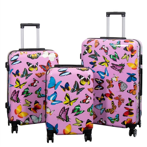 Kuffertsæt i en solid og praktisk udgave. Sættet har et flot og let genkendeligt motiv - Pink med sommerfugle print