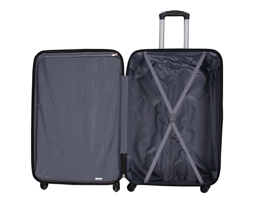 Funktionelt og komfortabelt kuffertsæt med striber. Sættet består af 3 rummelige kufferter i praktiske størrelser - så er du dækket ind, uanset hvad dit rejsebehov måtte være. Kufferterne er fremstillet i robust og slidstærkt letvægt ABS plast, der gør dem både robuste og modstandsdygtige overfor de hårde slag og pres, der kan opstå på f.eks. et bagagebånd. Med dette sæt er du garanteret et solidt og holdbart kuffertsæt når du er på farten. Kufferterne er forsynet med 2 praktiske bærehåndtag - et på siden, samt et teleskophåndtag og et bærehåndtag foroven. Teleskophåndtaget kan indstilles i forskellige positioner.