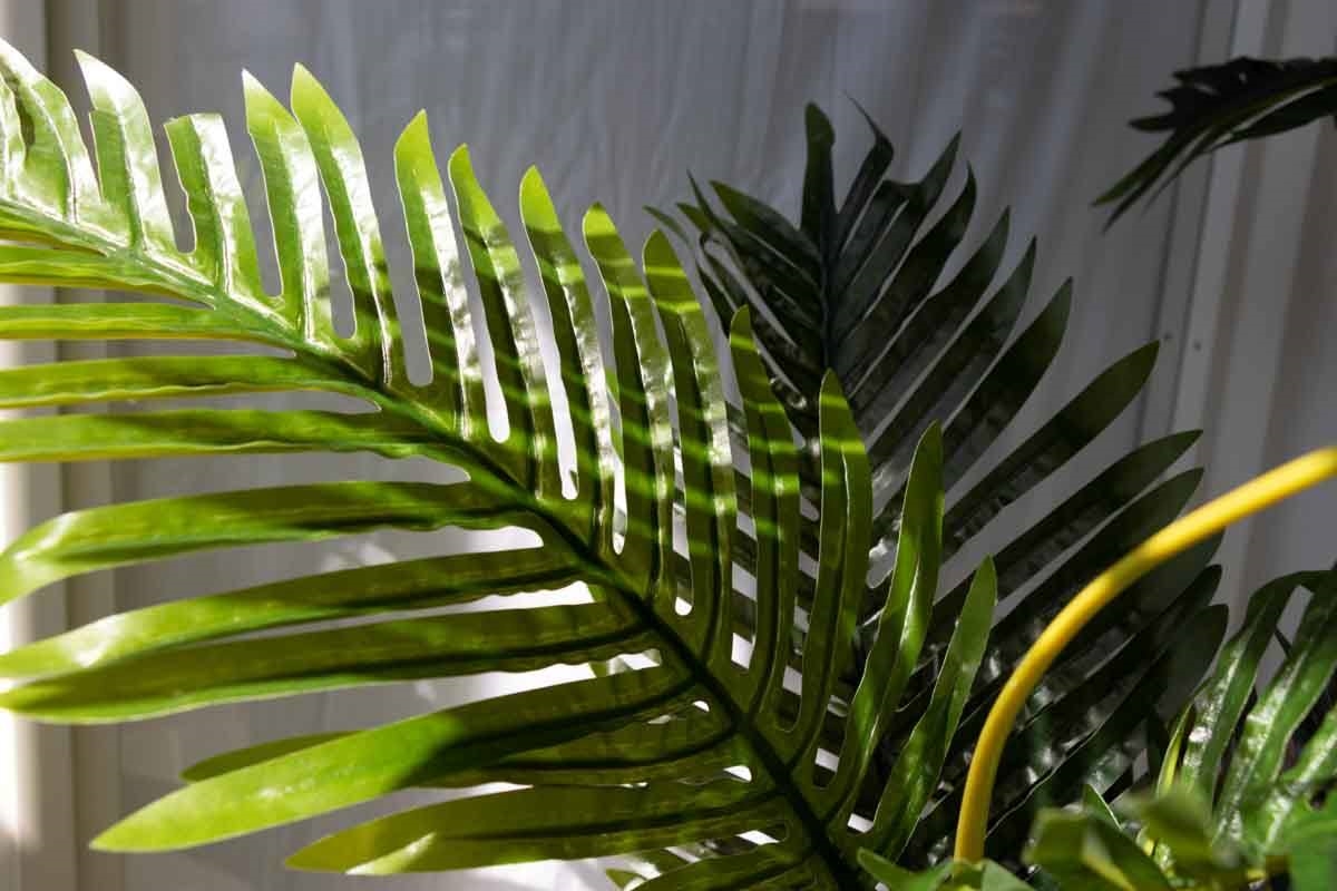 En af de største fordele ved denne kunstige Areca palme er, at den ikke kræver nogen form for vedligeholdelse. Du behøver ikke at vande den, beskære den eller bekymre dig om, hvor meget lys den får. Dette gør den ideel for dem, der ønsker det grønne look uden besvær. Forestil dig at sidde i din stue med denne prægtige Areca palme, der tilføjer et strejf af tropisk skønhed. Du kan nyde dens naturtro udseende og følelsen af at være omgivet af naturen, alt sammen uden vedligeholdelsesbesvær.