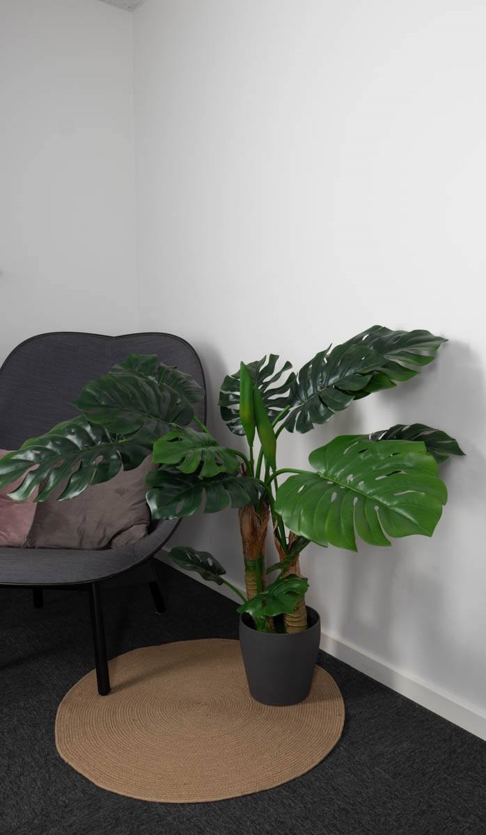 Forside » Indretning » Dekorationer » Kunstige planter Kunstig Fingerphilodendron Monstera Plante - Højde 100 cm - Store grønne blade Spar51% Home-tex 799,95395,00DKKSpar 405,- Få på lager Trustpilot Antal Læg i kurv Se mere fra: Home-tex Artikelnummer: YD025 Har du spørgsmål til produktet? Kunstig Fingerphilodendron MonsteraHøjde: 100 cmNaturtro plante i god kvalitet Type: Fingerphilodendron Monstera - kunstig plante Farve: Grøn Højde: 100 cm Diameter: 125 cm Materiale: Plastik Vedligeholdelse: Kan let vedligeholdes med en fugtig klud Leveres i: Kasse Potte: Sort potte medfølger Potte højde: 18 cm Potte diameter: 18 cm Vi anbefaler, at man sætter planten i en krukke for et gennemført look. Naturtro og dekorativ Fingerphilodendron Monstera Fyldig grøn Fingerphilodendron Monstera plante, der med god volumen skaber liv i ethvert hjem. Invitér naturen indenfor med denne kunstige plante. Denne plante er tre stammet og forgrener sig ud i kraftige stilke med store grønne blade. Flot kunstig Fingerphilodendron Monstera plante, som holder til evig tid og aldrig går af mode. En enkel og tidsløs plante, som skaber liv i stuen, udestuen eller ethvert andet sted den placeres i hjemmet. Se vores store udvalg af moderne boligtilbehør Kunstige planter er meget populære, da de ikke kræver pleje og vedligeholdelse og samtidig er allergivenlige. Kunstige planter er desuden yderst velegnede til kontorarealer, restauranter, sygehuse, plejehjem og institutioner - alle steder hvor den friske grønne farve, kan være med til at give liv til rummet uden den store vedligeholdelse. Så er du på udkig efter en smuk og tidsløs dekoration til din indretning, så er kunstige blomster et godt valg. Tilbage til Kunstige planter