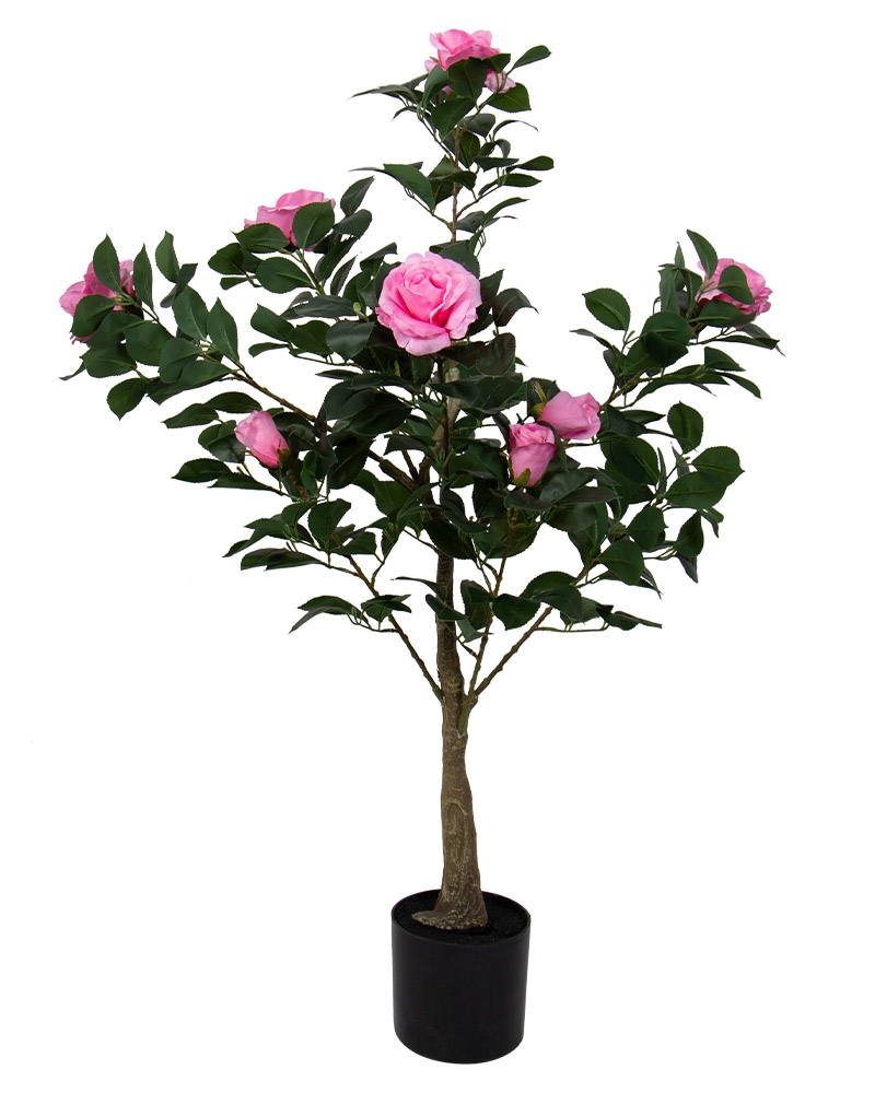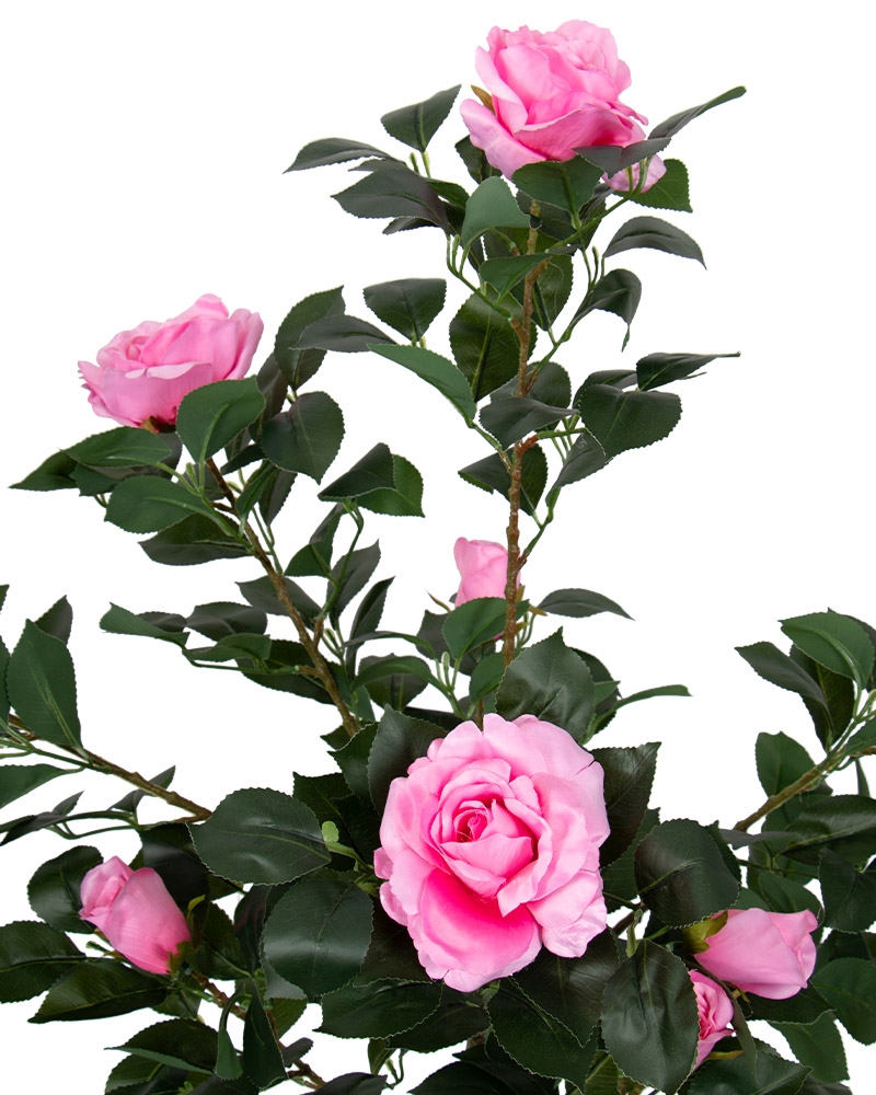 Dette kunstige rosentræ er ideelt til dem, der ønsker at tilføje et strejf af romantik og skønhed til deres hjem, uden besværet ved at passe en levende plante. Træet er 110 cm højt og har smukke detaljer med flotte lyserøde roser. Det kræver ingen vanding eller sollys, og er allergivenligt.