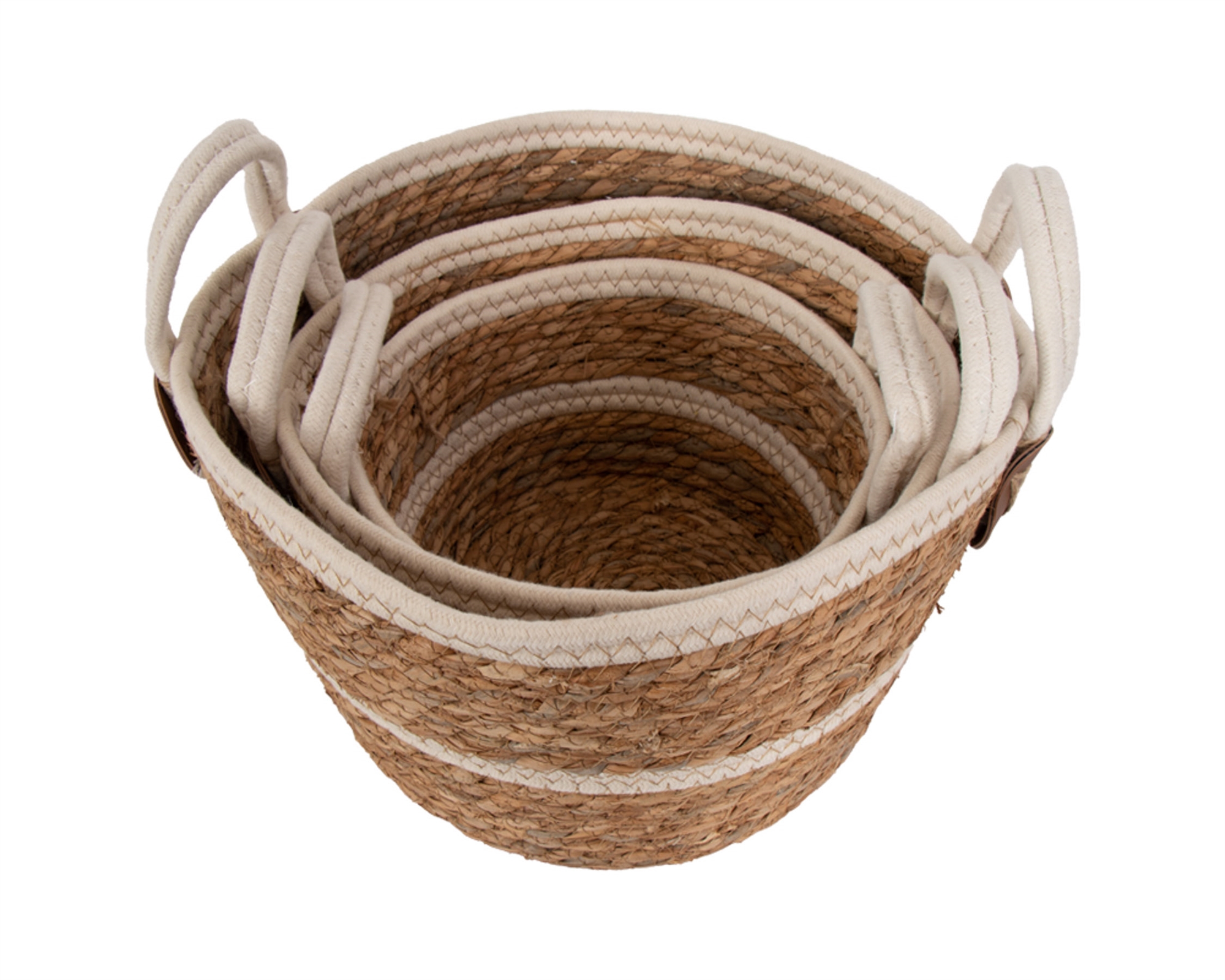 Forside » Indretning » Opbevaring » Flet kurve Kurvesæt - 3 stk. fletkurve i søgræs - Perfekt til små opbevaring Spar33% Home-tex 299,95200,00DKKSpar 100,- Få på lager Trustpilot Antal Læg i kurv Se mere fra: Home-tex Artikelnummer: PR761 Har du spørgsmål til produktet? Velegnet til opbevaringUnikke og stilfulde detaljerRobust design Materiale: Søgræs og bomuld Mål: Stor: 20x32 cm Mellem: 17x25 cm Lille: 13x23 cm Skab orden med stil - Søgræs kurvesætDette sæt af søgræskurve er skabt til at hjælpe dig med at organisere dit hjem på en elegant måde. Sættet består af tre kurve i forskellige størrelser, designet til at opfylde forskellige opbevaringsbehov. Hver kurv er udført med unikke detaljer, der tilføjer en særlig charme til dit hjem.Søgræs som materialeSøgræs er et naturligt og bæredygtigt materiale, der er kendt for sin robusthed og holdbarhed. Det tilføjer et rustikt touch til ethvert rum, mens det stadig bevarer sin funktionelle værdi. Søgræs er også let at rengøre og vedligeholde, hvilket gør det til et praktisk valg til opbevaringskurve.Det unikke designDesignet af disse kurve er en blanding af traditionelt håndværk og moderne æstetik. Den øverste og midterste del af hver kurv er fastgjort med hvidt bomuldsreb, hvilket skaber en kontrastfuld effekt. Hankene er lavet af det samme hvide bomuldsreb og fastgjort med brunt kunstlæder og hørsnor, hvilket giver kurvene et unikt og stilfuldt udseende.Du kan finde en række lignende produkter i kategorien opbevaring. Tilbage til Flet kurve