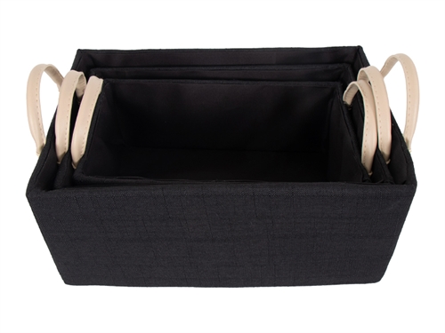 Disse sorte opbevaringskurve er både praktiske og æstetisk tiltalende. Sættet består af tre kurve i forskellige størrelser, hvilket giver dig mulighed for at organisere dine ting på en effektiv og elegant måde.