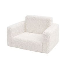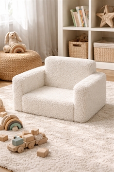 Det neutrale hvide plys design giver stolen et nordisk og tidløst udtryk, der passer naturligt ind i moderne indretning - både på børneværelset og i stuen.