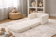 Giv dit barn sit helt eget hyggelige sted med denne praktiske og komfortable børnefoldestol fra Nordstrand Home. Den smarte 2-i-1 løsning fungerer både som en blød børnestol og kan nemt foldes ud til en lille madras - perfekt til afslapning, højtlæsning, filmhygge og små middagslure.