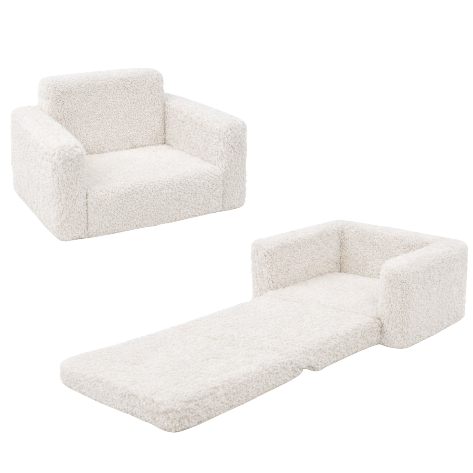 Børnefoldestol | 2-i-1 foldbar stol til børn med blødt plys betræk