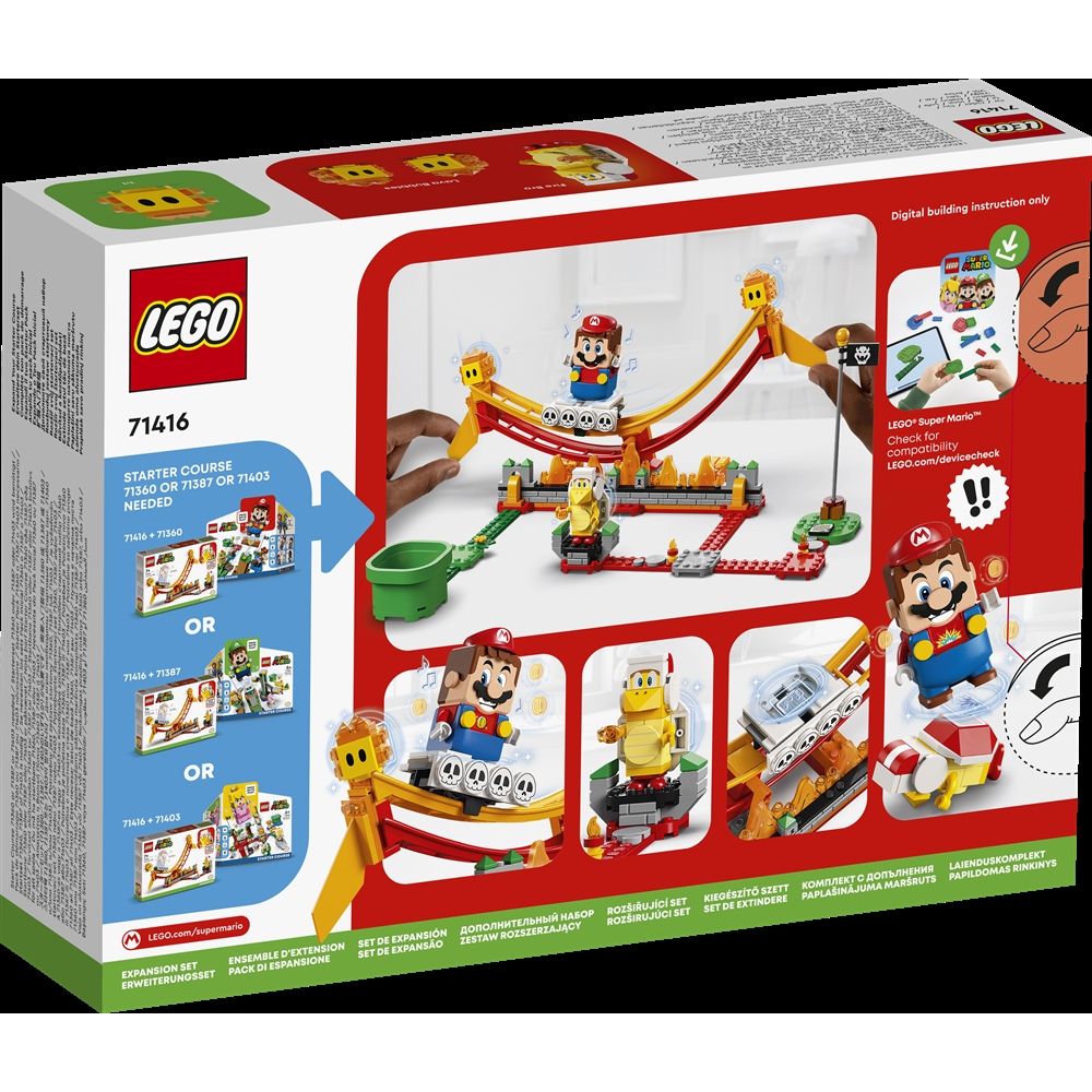 Forside » Alle LEGO produkter Lavabølge-forlystelse – udvidelsessæt - 71416 - LEGO Super Mario LEGO Super MArio Skarp pris: 299,00DKK Få på lager Trustpilot Antal Læg i kurv Se mere fra: LEGO Super MArio Artikelnummer: LEG71416 Har du spørgsmål til produktet? Rid på lavabølgen!Børn kan tilføje brandvarmt sjov til deres LEGO Super Mario verden med dette udvidelsessæt, der indeholder en lavabølge, der bevæger sig frem og tilbage, en Fire Bro og 2 lavabobler. Tilbage til Alle LEGO produkter