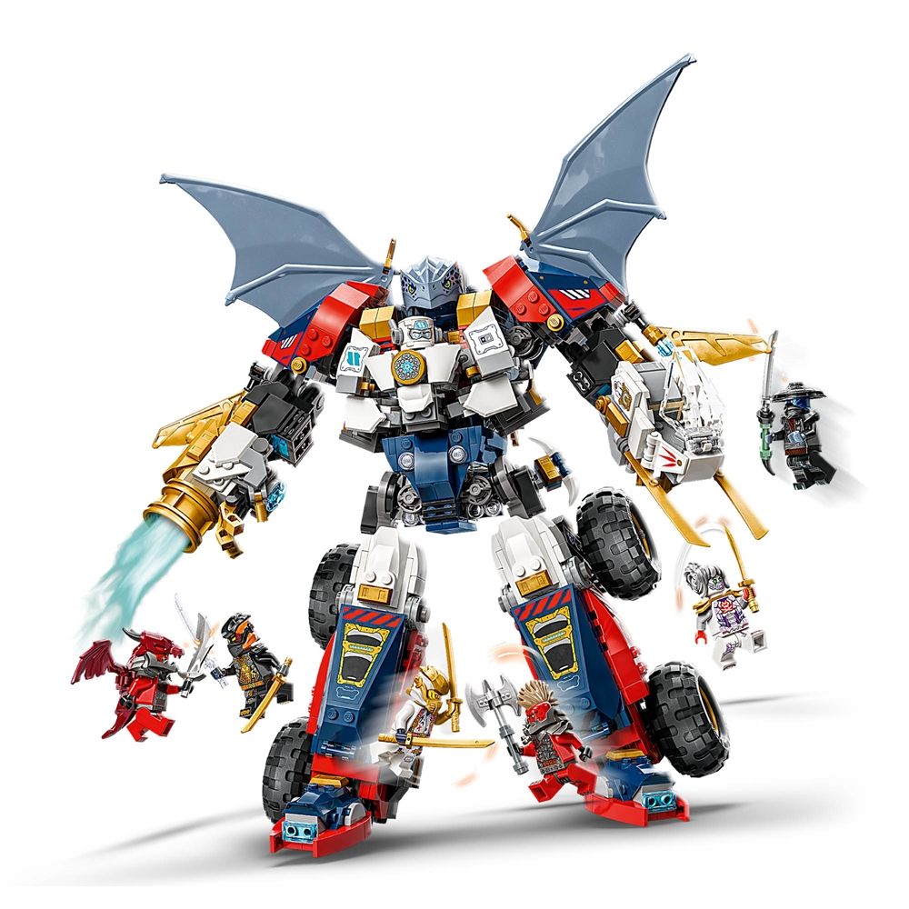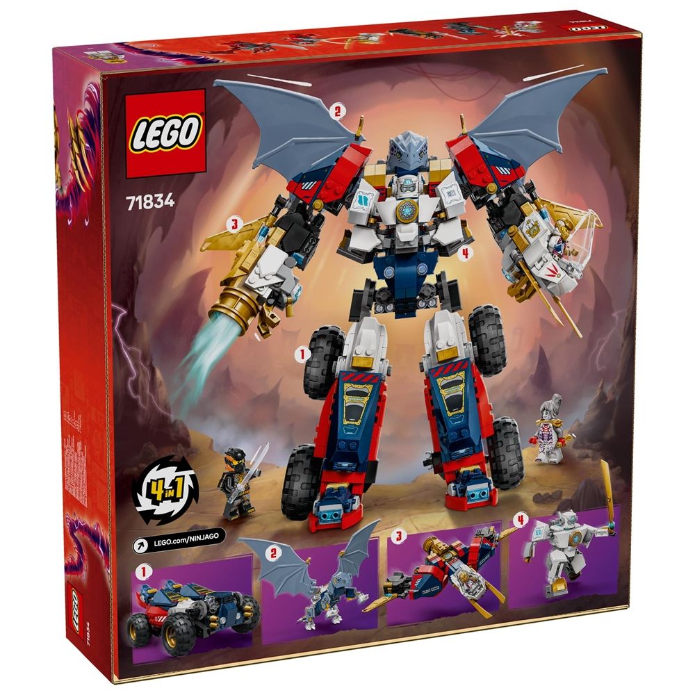 Forside » Alle LEGO produkter LEGO Ninjago - Zanes ultrakombirobot - 71834 - 1187 dele LEGO Ninjago Skarp pris: 699,00DKK Gratis fragt på denne vareFå på lager Trustpilot Antal Læg i kurv Se mere fra: LEGO Ninjago Artikelnummer: LEG71834 Har du spørgsmål til produktet? Drenge og piger fra 9 år kan nyde endeløse legemuligheder og genskabe spændende action fra sæson 3 af tv-serien NINJAGO®: Dragerne vågner med 4-i-1-byggesættet Zanes ultrakombirobot. Børn kan lege med den imponerende store kombi-mechrobot, som har bevægelige ben, fødder, arme, håndled, fingre og hoved, dragevinger samt cockpit og 2 skydere. De kan også adskille den i 4 mindre legetøjsmodeller: en drage med bevægelige elementer og vinger, et jetfly med bevægelige motorer og et drejeligt c ockpit, en bil med 4 store terrængående hjul og 2 cockpits, der kan åbnes, herunder et med skjulte blastere, samt en actionfigur af Zane. Ninjalegesættet indeholder 6 minifigurer, så børn kan opleve timevis af kampe med rolleleg. Ninjaerne Sora og Cole og deres allierede Pixal er bevæbnet med seje ninjavåben til at tage kampen op mod den skurkagtige trio, som udgøres af Nokt, en dragonisk kriger og en dragonisk spejder, som har hvert deres våben som tilbehør. Tilbage til Alle LEGO produkter