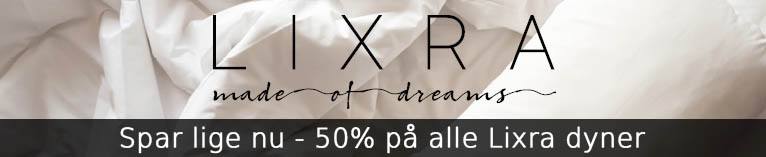 LIXRA er et brand med en serie af produkter til dit sovemiljø. LIXRA er skabt af Zleepmate, som er en dansk virksomhed med et globalt netværk. Zleepmate skaber brand, serie og produkter med fokus på omtanke, velvære og kvalitet. Zleepmate har et mål - de vil være de bedste på markedet.Producenten har igennem innovativ tankegang og løsningsorienteret mind-set skabt dyner og puder, ja faktisk mange komponenter til dit soveområde for at du skal kunne skabe det mest optimale sove miljø for dig. Deres produkter er derfor sammensat igennem partnerskaber, som indeholder kompetent viden, forskning og den nyeste teknologi. Men med det vigtigste element 'on top of mind', nemlig dig - kunde & bruger, og netop derfor er LIXRA en del af vores sortiment. Med alt dette i tankerne, kan nu kigge igennem deres store, unikke og lækre udvalg af dyner, puder og rullemadrasser her på siden. Du kan med sikkerhed finde det som du mangler til dit sovemiljø herunder - om det er en dyne, pude eller måske flere dele, kan du nemt sammensætte dit miljø tilpasset dit herunder.