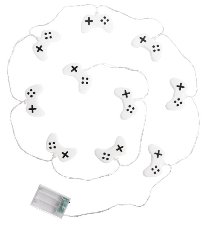 Forside » Pynteting Lyskæde til børn - Gamer controller - 10 LED lamper - Længde 200 cm - Petite Nuit Spar57% Borg Living 149,9565,00DKKSpar 85,- Få på lager Trustpilot Antal Læg i kurv Se mere fra: Borg Living Artikelnummer: 57266 Har du spørgsmål til produktet? Holdbart plast2 meter lyskædeCool design Materiale: Plastik Længde: lyskæde i alt: 2.0 m. Afstand mellem hver lampe: ca. 20 cm. Antal lamper: 10 stk. Farve: Hvid og sort Pakning: Æske Batteri: 3xAA batterier (medfølger ikke) LED lyskæde med gamer controller Denne charmerende LED lyskæde fra Petite Nuit er designet somer gamer controllers. Den er en ideel dekoration til børneværelset, da den skaber en behagelig atmosfære og tilføjer et drømmende touch til rummet. Lyskæden er 2 meter lang og er let at placere på hylder eller reoler, da den ikke kræver nogen stikkontakt. Plastik som materiale Plastik er et robust og let materiale, der gør denne lyskæde holdbar og nem at håndtere. Dens lette vægt gør det muligt at hænge kæden op uden at belaste overfladerne, og dens robusthed sikrer, at den kan modstå børns leg. Plastik er også et fleksibelt materiale, der giver mulighed for detaljerede designs som disse controllers på denne lyskæde. LED-lys som funktion LED-lys er kendt for deres energieffektivitet og lange levetid. I denne lyskæde giver de et blødt og behageligt lys, der skaber en hyggelig atmosfære i børneværelset. LED-lamperne er også sikre at bruge, da de ikke bliver varme og derfor kan tændes i længere tid uden risiko. Tag også gerne et kig i kategorien Børneværelset. Tilbage til Pynteting