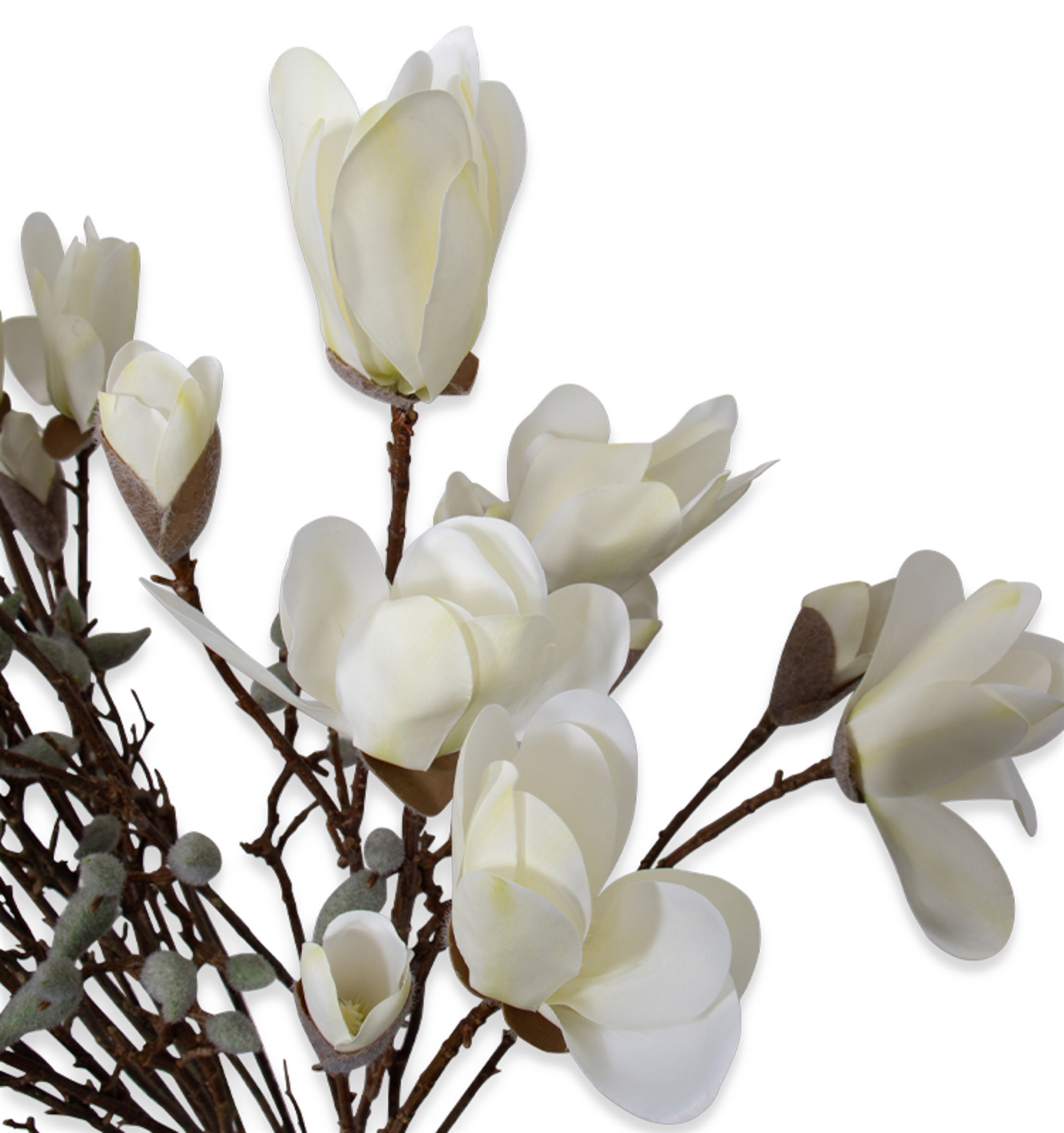 Forside » Indretning » Dekorationer » Kunstige planter Magnolia gren - 90 cm - Flot og kunstig gren med hvide blomster - Dekoration til boligen Spar62% Home-tex 199,9575,00DKKSpar 125,- På lager Trustpilot Antal Læg i kurv Se mere fra: Home-tex Artikelnummer: PR700 Har du spørgsmål til produktet? Naturtro designLet vedligeholdelseStilfuld i ethvert rum i dit hjem Type: Magnolia gren Farve: Hvid Højde: 90 cm Antal grene: 1 stk. med 4 blomsterhoveder Materiale: Plastik Vedligeholdelse: Kan let vedligeholdes med en fugtig klud OBS Billedet er affotograferet med 8 grene og vasen følger ikke med Levende og naturtro magnoliagren til dit hjem Vores kunstige magnoliagren på 90 cm tilføjer et strejf af naturlig skønhed til ethvert rum. Grenen er designet med stor opmærksomhed på detaljerne, hvilket gør den næsten umulig at skelne fra en ægte magnoliagren. Udstyret med fire blomsterhoveder og fire blomsterknopper, vil denne gren være det perfekte supplement til en vase på gulvet og kan også kombineres med andre blomster og grene for en mere personlig dekoration. Plastik som materialevalg Plastik er et alsidigt materiale, der gør det muligt at skabe et produkt, der er både holdbart og realistisk. Det er let at rengøre og vedligeholde, hvilket betyder, at din magnoliagren vil se frisk og livlig ud i lang tid. Derudover er plastik et let materiale, hvilket gør det nemt at flytte rundt på grenen efter behov. Fleksibel dekoration Med vores magnoliagren har du mulighed for at skabe et personligt og unikt udtryk i din bolig. Du kan kombinere grenen med andre blomster og grene for at skabe en dekoration, der afspejler din personlige stil. Dette giver dig mulighed for konstant at forny din boligindretning og skabe et nyt udtryk, når du har lyst. Hvis du er interesseret i lignende produkter, så besøg kategorien Dekorationer. Tilbage til Kunstige planter