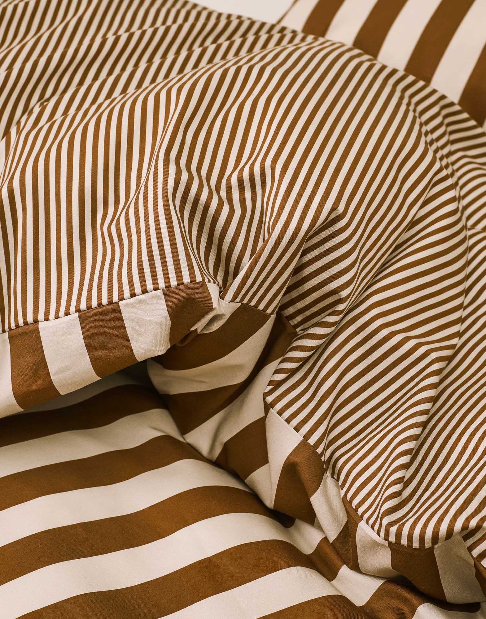 Forside » Sengetøj » Enkelt sengetøj » Enkelt sengetøj 140x200 cm Marc O'Polo sengetøj - 100% Enzymvasket bomulds sengesæt - 140x200 cm - Classic Stripe Toffee Brown sengelinned Spar22% Marc O'Polo 899,95699,95DKKSpar 200,- Gratis fragt på denne vareFå på lager Trustpilot Antal Læg i kurv Se mere fra: Marc O'Polo Artikelnummer: 8377-1 Har du spørgsmål til produktet? OEKO-TEX certificering100% enzymvasket bomuldBlød og lækker kvalitet Dynebetræk: 140x200 cm Pudebetræk: 1 stk. á 60x63 cm Materiale: 100% Enzymvasket bomuld Vævning: Ekstra fint og blødt 200TC percale (Thread count = antal tråde pr. kvadrat tomme) Farve: Brun Design: Classic Stripe Toffee Brown Brand: Marc O'Polo Lukning: Dyne lukkes med knapper og pudebetræk med overlap Vask: 60° Tørretumbling: Ja Tåler strygning: Ja Certificering: STANDARD 100 by OEKO-TEX® (0906030 Centexbel) Lækkert sengetøj fra populærere Marc O'Polo, så er du sikret god og lækker kvalitet. Sengesættet er vævet af de fineste tætte bomuldstråde, hvilket giver et fint og eksklusivt sengesæt, med stor slidstyrke. Mikkeli serien er lavet af enzymvasket bomuldspercale, der givet et let og meget blødt sengesæt. Sengetøj fra Marc O'Polo er farveægte, hvilket betyder at det holder farven efter gentagne vaske. Sengesættet er dobbelt faced dvs. vendbart med forskellige mønstre eller farve på hver side. Køb let pudebetræk til dine ekstra puder her Marc O'Polo er nok mest kendt for deres klassiske tøj til både mænd og kvinder. Marc O'Polo har altid stået for kvalitetsprodukter, hvilket også gør sig gældende indenfor boligtekstiler - Her får du sengetøj i et elegant og stilrent design. Frisk sengen og soveværelset op med et flot og lækkert sæt sengetøj som dette. Benyt samtidig muligheden for at sikre dig maximal sovekomfort, ved at tilføje et nyt blødt lagen af høj kvalitet. Du finder vores store sortiment af kvalitets lagner her Tilbage til Enkelt sengetøj 140x200 cm