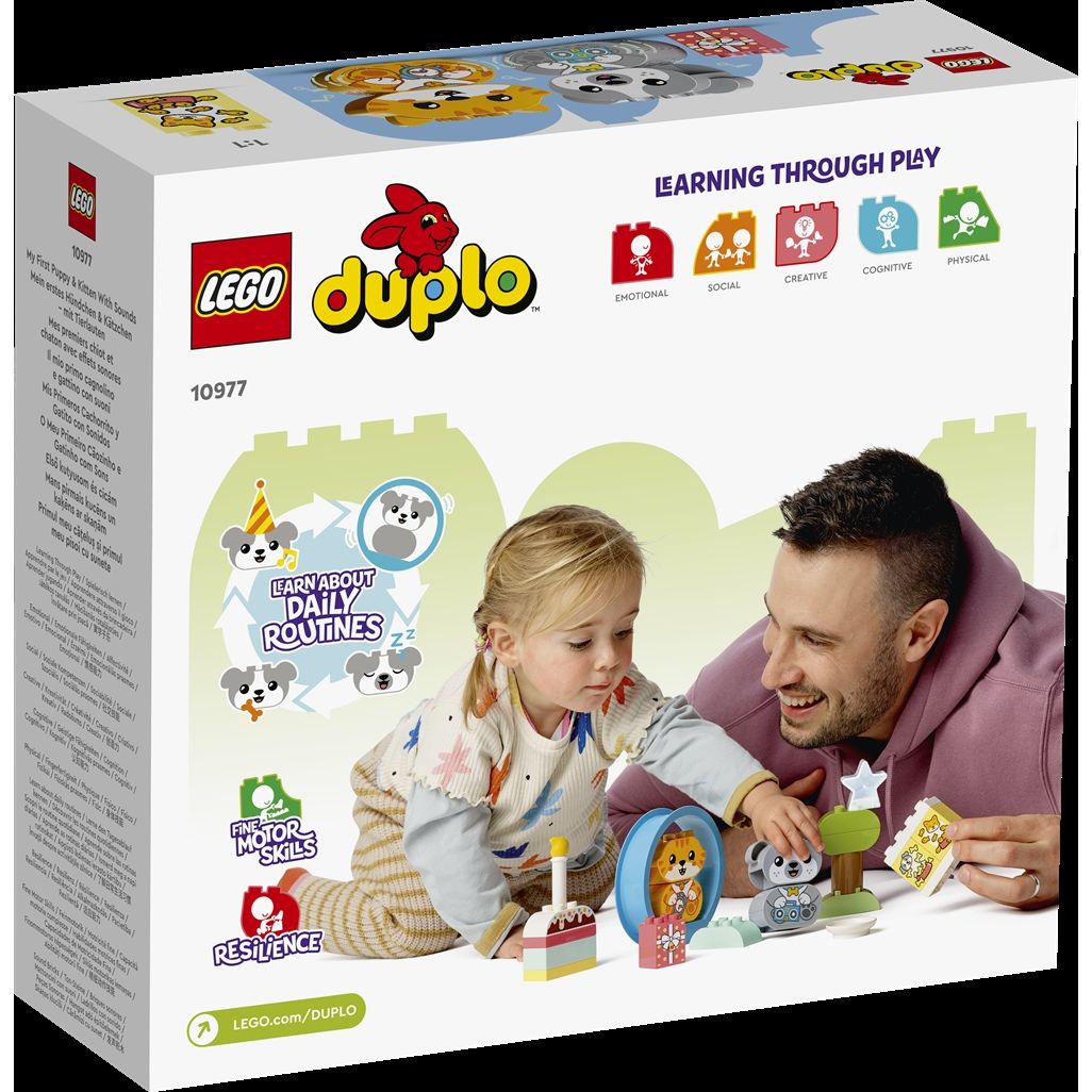 Forside » Alle LEGO produkter Min første hvalp og killing med lyde - 10977 - LEGO DUPLO Duplo Skarp pris: 399,00DKK Få på lager Trustpilot Antal Læg i kurv Se mere fra: Duplo Artikelnummer: LEG10977 Har du spørgsmål til produktet? Leg og lær med en killing og hvalp – med lyde!Lær om hverdagens rutiner og omsorg for kæledyr med dit lille barn. Den søde kat og hund laver realistiske lyde, der forbedrer legeoplevelsen. Tilbage til Alle LEGO produkter