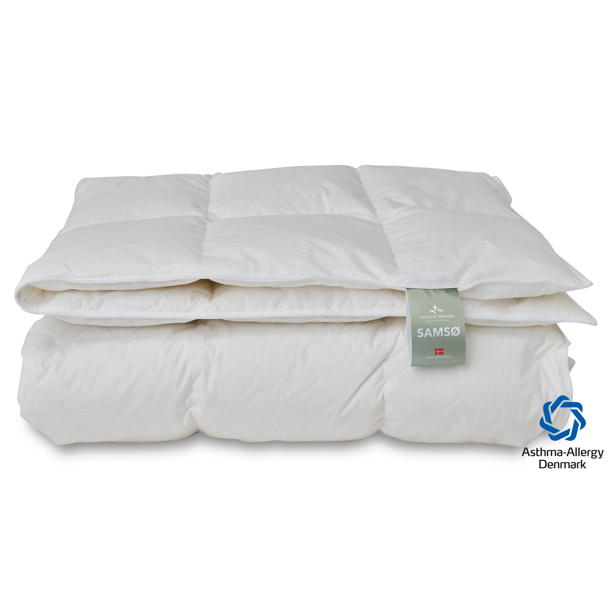 Forside » Dyner » Enkelt dyner » Ekstra lang dyne 140x220 cm Moskusdun dyne - Samsø dynen - 140x220 cm - Vinterdyne - Quilts Of Denmark Spar53% Norvigroup 5.099,002.395,00DKKSpar 2.704,- Gratis fragt på denne vareFå på lager Trustpilot Vælg størrelse Vælg variant Antal Læg i kurv Se mere fra: Norvigroup Artikelnummer: 2055011 Læs vores dyneguide Læs om vedligeholdelse af dyner og puder Se vores store udvalg af puder Har du spørgsmål til produktet? Vinterdyne - Samsø - Dansk produceretBæreevne: Over 1190% moskusdun Størrelse: 140x220 cm - enkelt dyne med ekstra længde Type: Lun vinterdyne Fyld: 90% moskusdun Brand: Quilts Of Denmark - Samsø Produceret i: Danmark Bæreevne: Over 11 (Gammel målemetode) Bæreevne: 725 (Ny målemetode) Fyldvægt: 660g Bolster: 100% Økologisk bomuld 60/60 - TC280 Konstruktion: 6x8 kassettedyne med piping kant Vask: 60° (Vigtigt at anvende Enzymfrit vaskemiddel) Tørretumbling: Skal tørretumbles med tørrebolde Garanti: 10 år Certificering: EN12934-normen - Klasse 1 dun Certificering: NOMITE - Fri for husstøvmider Certificering: Downafresh - 100% rene dun Certificering: Down pass - Højeste dyreetiske forhold Certificering: STANDARD 100 by OEKO-TEX® (1176-194) Dynen er både Svanemærket og anbefalet af Asthma Allergy Nordic. Se alle vores puder fra vores Ø serie Samsø dynen - En dansk produceret vinterdyne fra danske Quilts of Denmark. En kvalitetsdyne der er fremstillet i 100% økologisk bomuld og med varmebehandlet og optimalt renset dun. Samsø vinterdynen er perfekt til de kolde måneder, da dynen isolere godt. Den er fyldt med gode certificeringer som sikre dig en lækker kvalitet og høj standard på din dyne. SAMSØ er den serie, der har flest certificeringer og godkendelser i forhold til at være bæredygtig og for ikke at indeholde noget med særlig risiko for at give hudallergi. SAMSØ dynen leveres ydermere i en lækker taske, der er lavet af genbrugs materiale. Se vores store udvalg af sengetøj i 140x220 cm her Kollektionen af de danske Ø dyner, er designet, udviklet og produceret i Danmark med fokus på kvalitet, miljø og dyrevelfærd. Quilts Of Denmark samarbejder med en række uafhængige organisationer for at sikre kvaliteten og intergriteten af deres produkter. De små øer ligger i forskellige vande – lige fra Vesterhavet hvor de barske bølger ruller i land, og til tider når stormfulde højder – til de stille fjorde, vige og bugter hvor der hersker fred, ro og idyl. "Quilts of Denmark er høj kvalitets dun produkter der er fremstillet i Danmark, af mennesker med ægte passion. Nordisk kvalitet uden kompromis." Tilbage til Ekstra lang dyne 140x220 cm