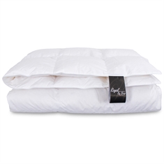 Avanceret konstruktion: Dynen er konstrueret med kassetter og indre kanalvægge. Kassetterne sikrer jævn fordeling af dunene og forhindrer, at fyldet klumper sig sammen. Kanalvæggene sikrer derimod, at dunene isolerer uden kuldebroer.