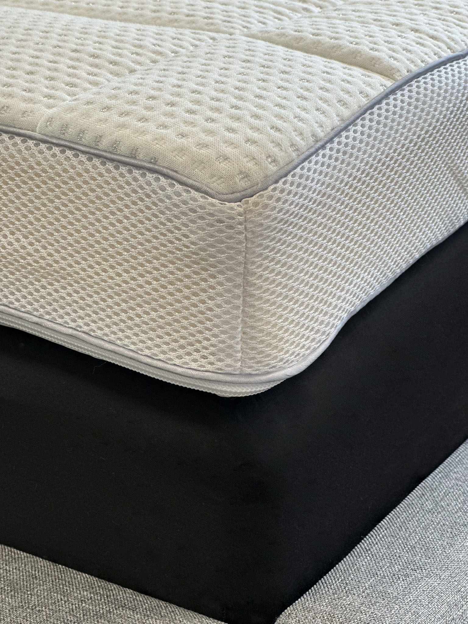 Betræk: Quiltet betræk 50% bambus & 50% polyester, indsyet antibakterielt sølvtråd, skridsikker bagside