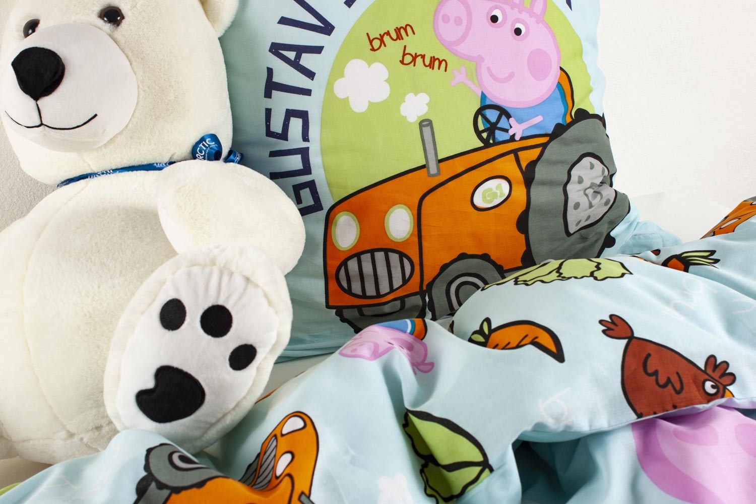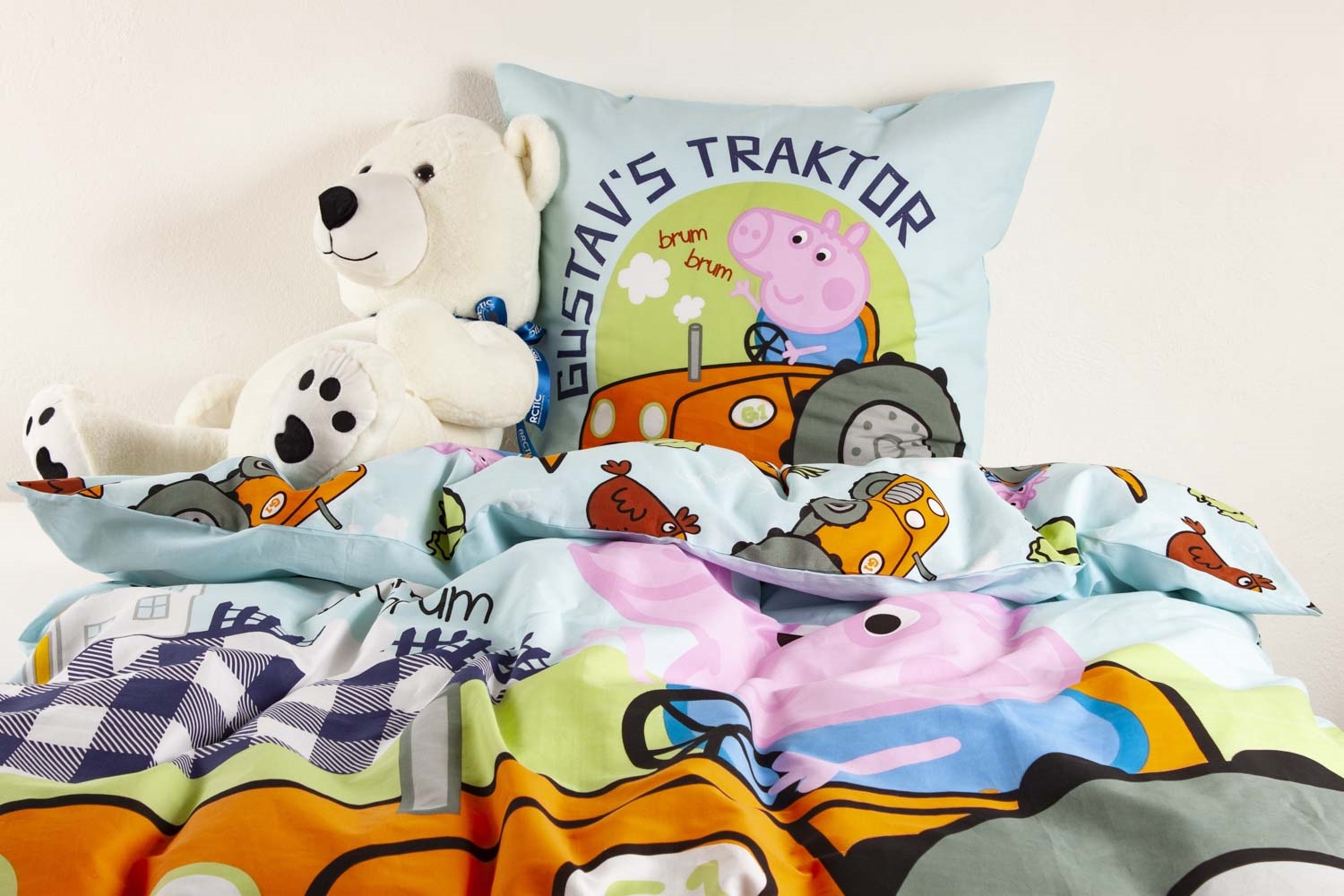 Forside » Sengetøj » Børne sengetøj » Børne sengetøj 140x200 cm Økologisk Gustav Gris sengetøj 140x200 cm - Gustav Gris og traktor - Sengesæt i 100% økologisk bomuld Spar65% Licens 269,9595,00DKKSpar 175,- På lager Trustpilot Antal Læg i kurv Se mere fra: Licens Artikelnummer: 160012-1 Læs vores sengetøjsguide Se vores store udvalg af lagner Se vores store udvalg af dyner 140x200 Har du spørgsmål til produktet? Allergivenlig100% økologisk bomuldOEKO-TEX® certificeret Dynebetræk: 140x200 cm Pudebetræk: 60x63 cm Materiale: 100% økologisk bomuld Farve: Lyseblå Motiv: Gustav Gris traktor Design: Vendbar - Forside med Gustav Gris der kører traktor, bagside med all-over print Lukning: Lynlås Vask: 60° Tørretumbling: Ja Tåler strygning: Ja Certificering: STANDARD 100 by OEKO-TEX® (2012PK0106 AITEX). Din garanti for at produktet er fri for sundhedsskadelig kemi. Sengesæt i 100% økologisk bomuld, med Gustav Gris der kører traktor. Med lette og åndbare bomuldstråde giver dette, sengesæt en blød overflade, som gør dynen behagelig for barnet at sove med. Et slidestærkt og allergivenligt sengesæt med høj åndbarhed og absorberingsevne, som vil hjælpe med at gøre sovetid til en rar oplevelse. Sengetøj med den lille, glade og lyserøde Gustav Gris. Sættet her er vendbart og har på den ene side et motiv af Gustav Gris der kører traktor, mens bagsiden er fyldt med små tegninger af Gustav og gårdfigurer. Det er altid en god ide at gøre brug af barnets interesser, hvis man ønsker at skabe et tryggere og mere spændende sovemiljø til sit barn. Sengesættet er produceret i 100% økologisk bomuld som gør sættet allergivenligt, slidestærkt og med høj åndbarhed. Den rene bomuldskvalitet giver et lækkert og blødt sengesæt, der er med til at fremme en sovekomfort for barnet. Bomuldssengetøj kan vaskes ved 60° i vaskemaskinen, som er også et med til at holde et et højt hygiejne niveau. Sengetøjet er yderligere fremstillet med OEKO-TEX certificeret, hvilke er din garanti for at sættet er fri for skadelig kemi. Gå på udkig efter favoritterne og meget mere, i vores store udvalg af tilbehør til børneuniverset For barnet bør sengen være et trygt sted og alle elementerne skal til sammen skabe bløde og dejlige omgivelser for barnet at finde ro i. Brug derfor gerne barnets interesser, til at skabe et trygt soverum for barnet. Hos os kan du finde et stort udvalg af tilbehør til sengen og børneværelset, lige fra lagner til dyner, puder, sengetøj og meget mere, og massere af produkter med alle børnenes favoritter på. Alt sammen elementer som kan være med til at skabe det rette sove miljø og værelse til dit barn. Her kan du finde lækre og bløde kvalitets lagner Tilbage til Børne sengetøj 140x200 cm
