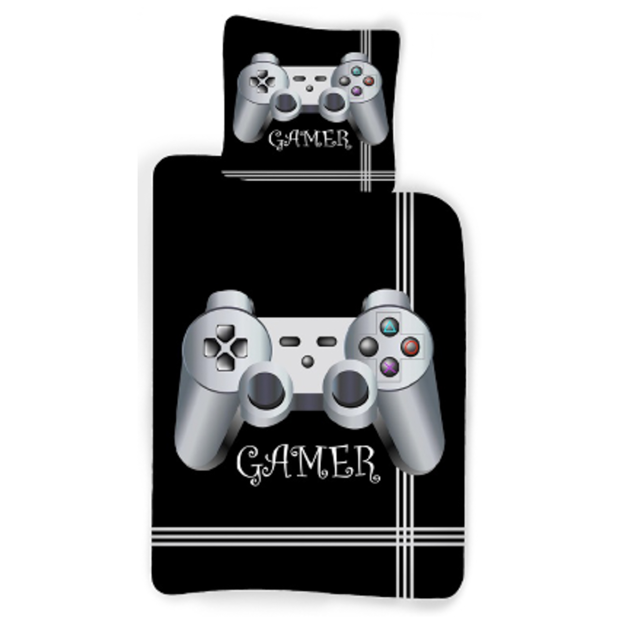 Forside » Sengetøj » Børne sengetøj » Børne sengetøj 140x200 cm PlayStation sengetøj 140x200 cm - Gamer sengetøj - Vendbart gaming sengetøj - 100% bomulds sengelinned Spar22% Licens 249,95195,00DKKSpar 55,- På lager Trustpilot Antal Læg i kurv Se mere fra: Licens Artikelnummer: 1035-1 Læs vores sengetøjsguide Se vores store udvalg af lagner Se vores store udvalg af dyner 140x200 Har du spørgsmål til produktet? Høj åndbarhed100% blød bomuldOEKO-TEX® certificeret Dynebetræk: 140x200 cm Pudebetræk: 60x63 cm Materiale: 100% blød bomuld Farve: Sort Motiv: PlayStation controller Design: Vendbar - Forside med en controller, ensfarvet bagside Lukning: Dyne med knapper, pudebetræk med overlap Vask: 60° Tørretumbling: Ja Tåler strygning: Ja Certificering: STANDARD 100 by OEKO-TEX® (2012PK0016). Din garanti for at produktet er fri for sundhedsskadelig kemi. Bomulds sengesæt til den lille gamer, der elsker PlayStation og andre spillekonsoller. Produceret med lette og åndbare bomuldsfibre giver det sengesættet en følelse af blødhed, der gør at dynen vil falde natuligt rundt om dit barn. Balancen i naturlig komfort fra det bløde materiale og det hyggelige fodbold design, gør dette sæt til en sikker favorit hos dit barn. Perfekt sengesæt til alle der elsker at spille PlayStation eller andre spillekonsoller. Sengesættet er vendbart. På den sorte forside ses en controller, samt teksten Gamer og bagsiden er ensfarvet. Overrask den spilleglade med et super sejt sengesæt. Det er altid en god ide at gøre brug af barnets interesser, hvis man ønsker at skabe et tryggere og mere spændende sovemiljø til sit barn. Sengesættet er produceret i 100% blød bomuld som gør sættet slidestærkt og med høj åndbarhed. Den rene bomuldskvalitet giver et lækkert og blødt sengesæt, der er med til at fremme en sovekomfort for barnet. Bomuldssengetøj kan vaskes ved 60° i vaskemaskinen, som er også et med til at holde et et højt hygiejne niveau. Sengetøjet er yderligere fremstillet med OEKO-TEX certificeret, hvilke er din garanti for at sættet er fri for skadelig kemi. Gå på udkig efter favoritterne og meget mere, i vores store udvalg af tilbehør til børneuniverset For barnet bør sengen være et trygt sted og alle elementerne skal til sammen skabe bløde og dejlige omgivelser for barnet at finde ro i. Brug derfor gerne barnets interesser, til at skabe et trygt soverum for barnet. Hos os kan du finde et stort udvalg af tilbehør til sengen og børneværelset, lige fra lagner til dyner, puder, sengetøj og meget mere, og massere af produkter med alle børnenes favoritter på. Alt sammen elementer som kan være med til at skabe det rette sove miljø og værelse til dit barn. Her kan du finde lækre og bløde kvalitets lagner Tilbage til Børne sengetøj 140x200 cm