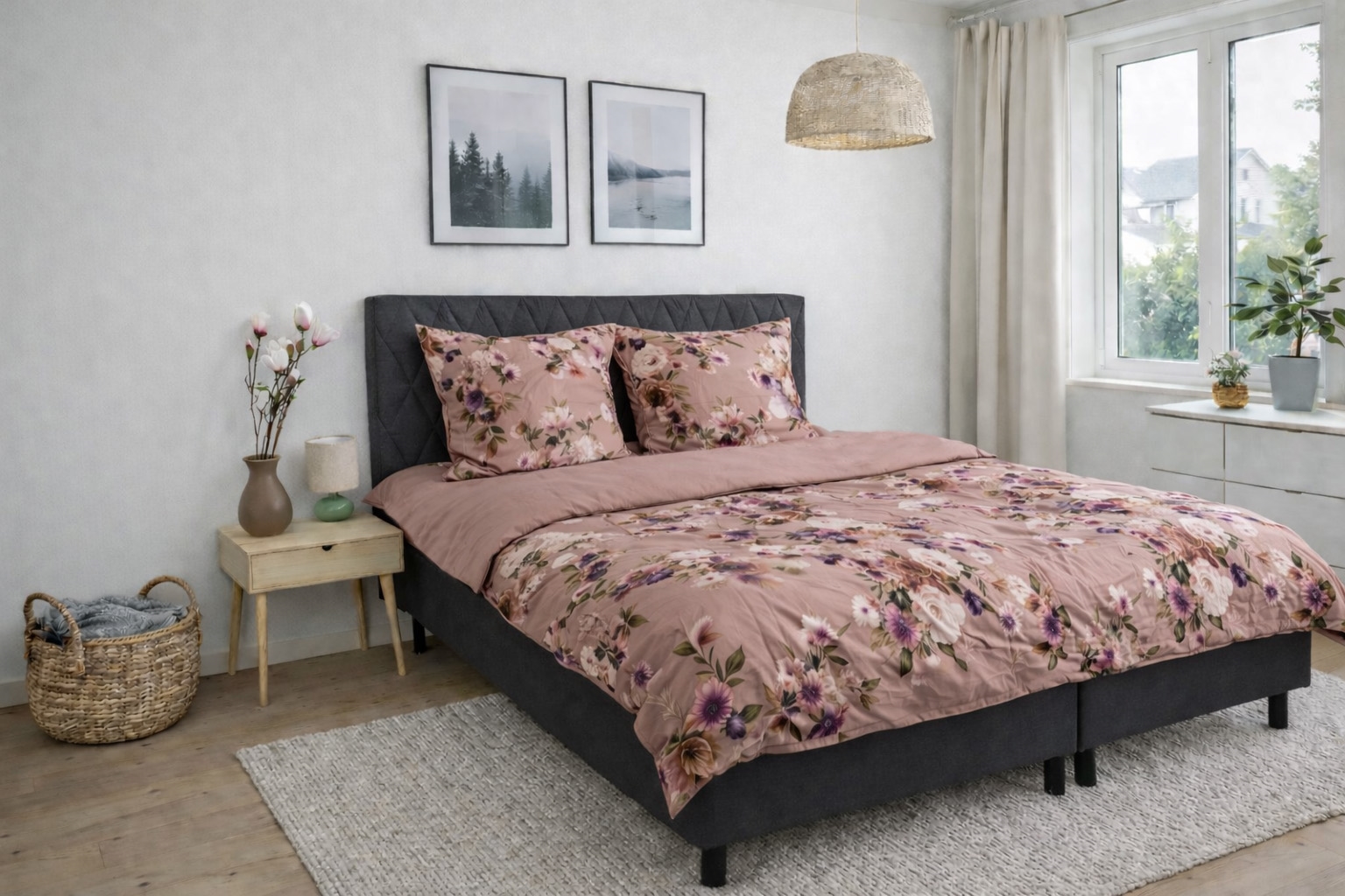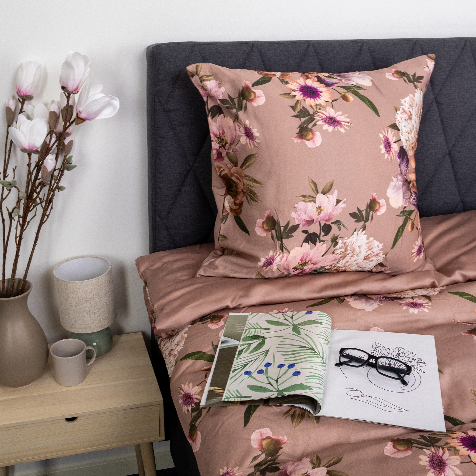 Har du ekstra puder i sengen, kan du nemt supplere med et ekstra pudebetræk i samme høje kvalitet. Det giver et ensartet og elegant udtryk i soveværelset, samtidig med at puderne får samme komfort og finish. Pudebetrækket kombinerer et smukt blomsterprint i nude og rosa nuancer på den ene side med en rolig, ensfarvet bagside, så du nemt kan skifte udtryk alt efter stemning og indretning.