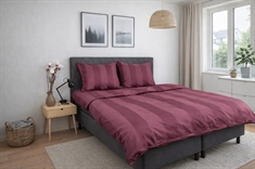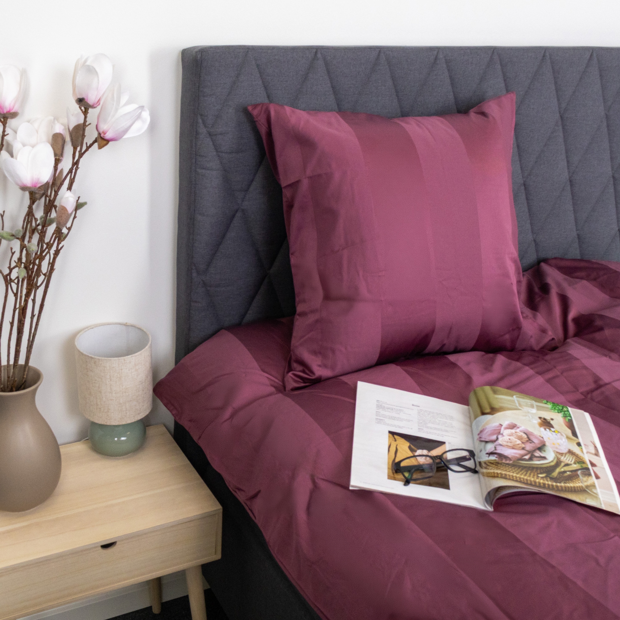 Skab en eksklusiv hotelstemning i soveværelset med dette blommefarvet stribede pudebetræk i 100% bomuldssatin. Det elegante design med brede jacquardvævede striber kombinerer tidløs minimalisme med luksuriøs komfort og er perfekt til dig, der ønsker et stilrent og indbydende sovemiljø.