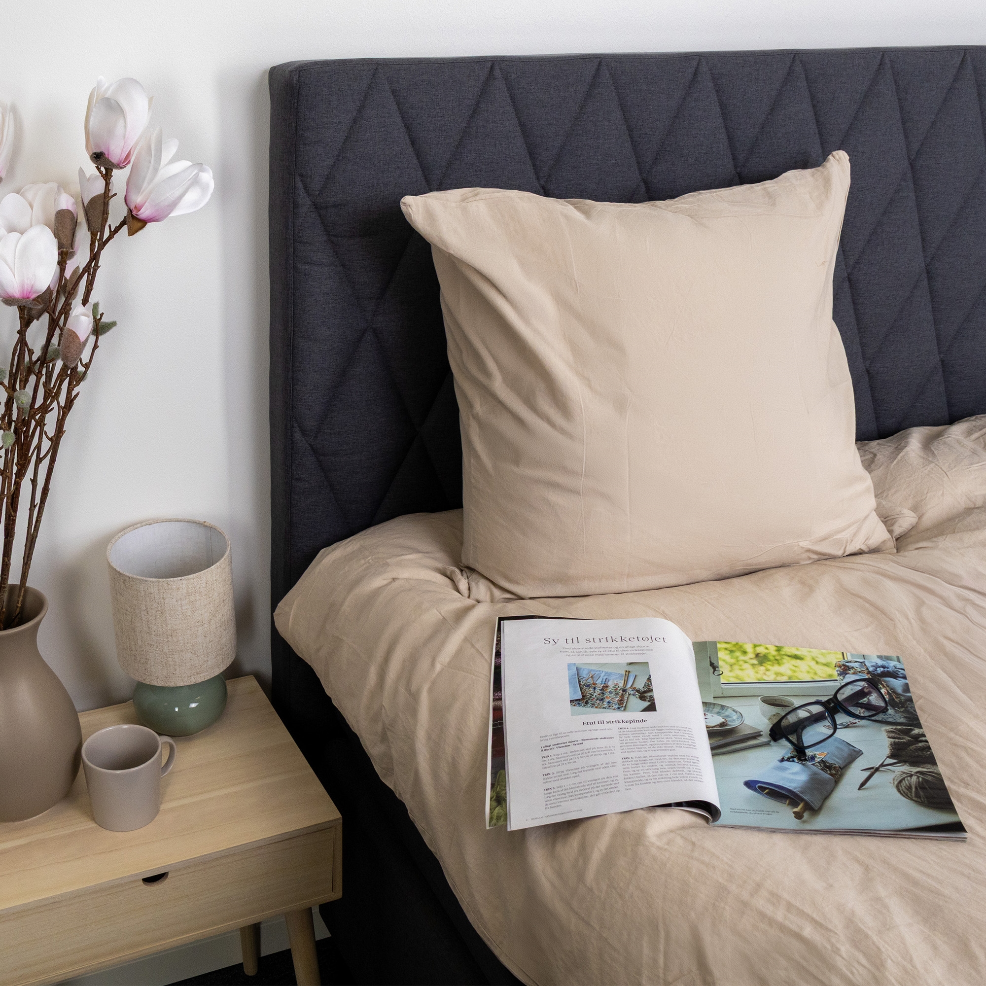 Pudebetrækket er udstyret med indvendig skjult lynlås. Den sandfarvede nuance og det ensfarvede design gør pudebetrækket let at matche med både lyse og mørke elementer i soveværelset. Dette løse pudebetræk gør det nemt at kombinere dine ekstra puder med resten af dit sengetøj.