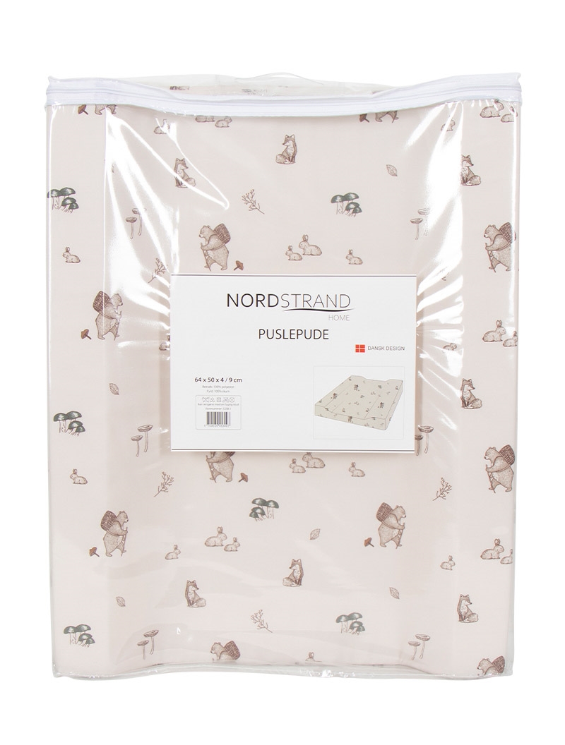Det søde beige design med skovens dyr tilføjer et hyggeligt udtryk til børneværelset eller puslepladsen.