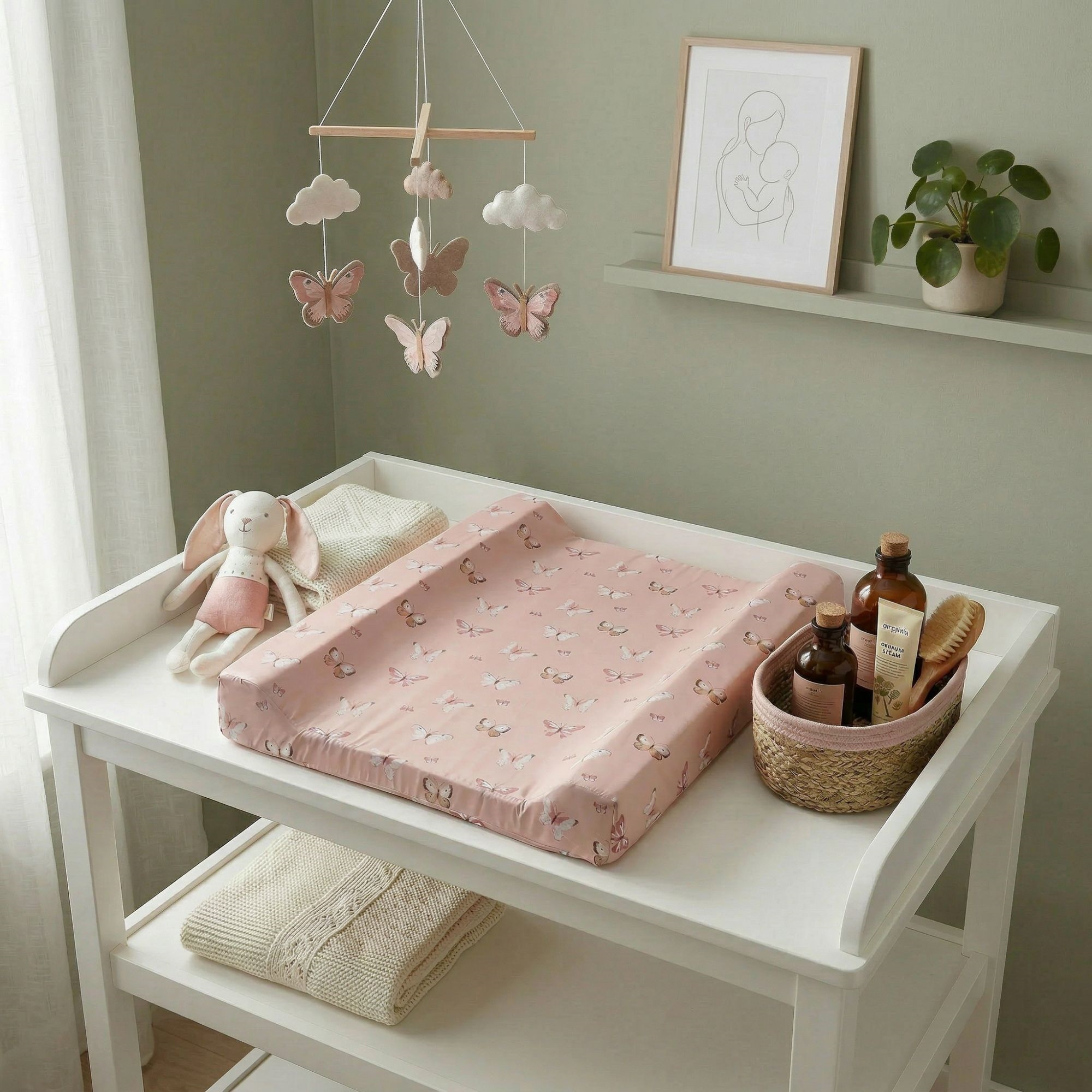 Praktisk, komfortabel og tryg puslepude fra Nordstrand Home i et sødt lyserødt design med små sommerfugle. Puslepuden måler 64x50x4/9 cm og passer til de fleste pusleborde og kommoder, hvor den skaber en stabil og sikker pusleplads til dit barn. De forhøjede sidekanter giver ekstra støtte og hjælper med at holde barnet centreret på puden, så pusletiden bliver mere rolig og tryg for både barn og forælder.