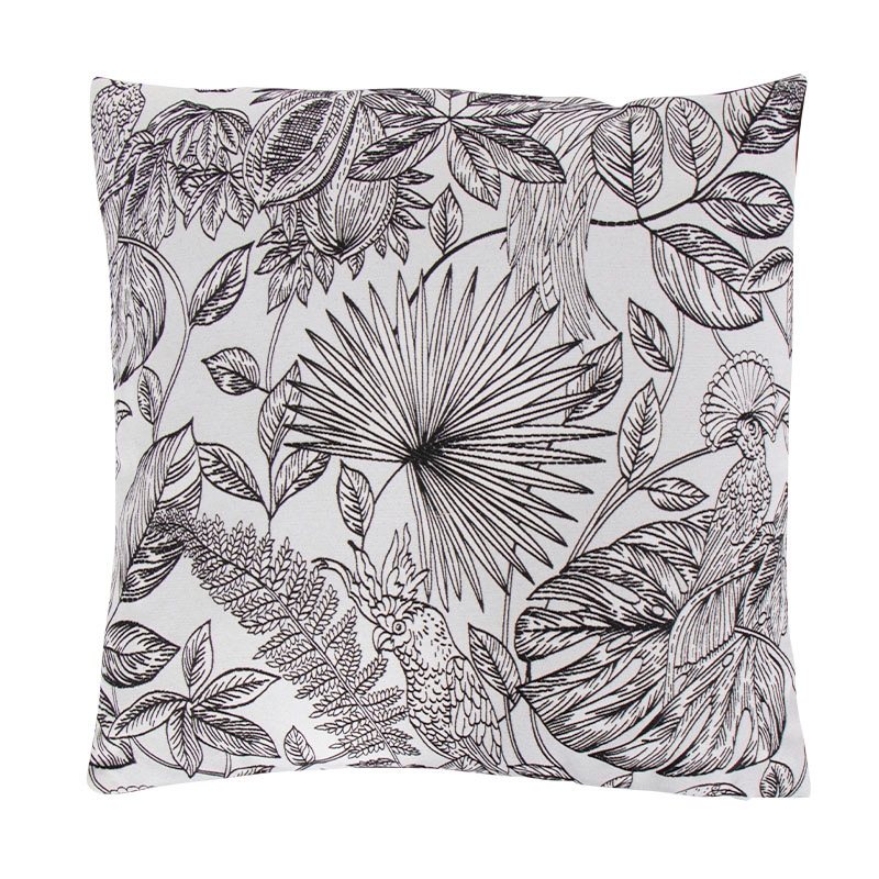 Pyntepude - 45x45 cm - Sort med print af fugle og blade - Blød sofapude fra Borg living