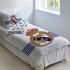 Forside » Sengetøj » Børne sengetøj » Børne sengetøj 140x200 cm Real Madrid sengetøj - Hvidt vendbart sengesæt med logo - 140x200 cm - 100% bomulds sengelinned - Fodbold sengetøj Licens 199,95DKK På lager Trustpilot Antal Læg i kurv Se mere fra: Licens Artikelnummer: 22233-1 Læs vores sengetøjsguide Se vores store udvalg af lagner Se vores store udvalg af dyner Har du spørgsmål til produktet? Perfekt til fodboldfanen100% blødt bomuldOEKO-TEX® certificeret Dynebetræk: 140x200 cm Pudebetræk: 60x63 cm Materiale: 100% blød bomuld Farve: Hvid og blå Motiv: Real Madrid logo Design: Vendbar - Forside med Real Madrids logo, bagside med all-over print Lukning: Dyne med knapper og pudebetræk med overlap Vask: 60° Tørretumbling: Ja Tåler strygning: Ja Certificering: STANDARD 100 by OEKO-TEX® (2023OK2234 AITEX). Din garanti for at produktet er fri for sundhedsskadelig kemi. Blødt sengetøj i 100% bomuld, med design af Real Madrid logoet. Perfekt til den lille fodboldfan, der elsker at spille. Produceret med lette og åndbare bomuldsfibre giver det sengesættet en følelse af blødhed, der gør at dynen vil falde natuligt rundt om dit barn. Balancen i naturlig komfort fra det bløde materiale og det hyggelige fodbold design, gør dette sæt til en sikker favorit hos dit barn. Vis din støtte til favorit fodboldholdet med dette Real Madrid sengetøj. Sengetøjet er vendbart ned et stort logo på forsiden og et all-over print på bagsiden. Det er altid en god ide at gøre brug af barnets interesser, hvis man ønsker at skabe et tryggere og mere spændende sovemiljø til sit barn. Sengesættet er produceret i 100% blød bomuld som gør sættet slidestærkt og med høj åndbarhed. Den rene bomuldskvalitet giver et lækkert og blødt sengesæt, der er med til at fremme en sovekomfort for barnet. Bomuldssengetøj kan vaskes ved 60° i vaskemaskinen, som er også et med til at holde et et højt hygiejne niveau. Sengetøjet er yderligere fremstillet med OEKO-TEX certificeret, hvilke er din garanti for at sættet er fri for skadelig kemi. Gå på udkig efter favoritterne og meget mere, i vores store udvalg af tilbehør til børneuniverset For barnet bør sengen være et trygt sted og alle elementerne skal til sammen skabe bløde og dejlige omgivelser for barnet at finde ro i. Brug derfor gerne barnets interesser, til at skabe et trygt soverum for barnet. Hos os kan du finde et stort udvalg af tilbehør til sengen og børneværelset, lige fra lagner til dyner, puder, sengetøj og meget mere, og massere af produkter med alle børnenes favoritter på. Alt sammen elementer som kan være med til at skabe det rette sove miljø og værelse til dit barn. Her kan du finde lækre og bløde kvalitets lagner Tilbage til Børne sengetøj 140x200 cm