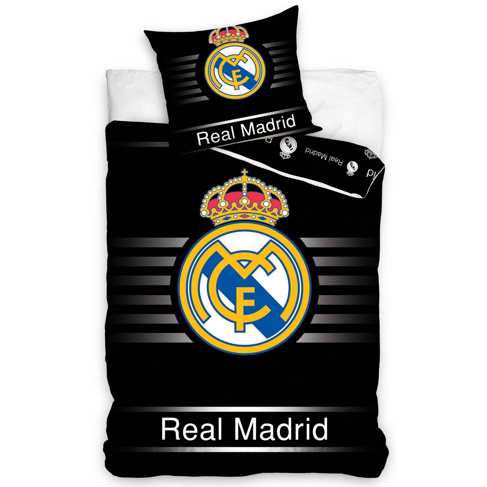 Real Madrid sengetøj 140x200 cm – Sort vendbart sengesæt til fodboldfans