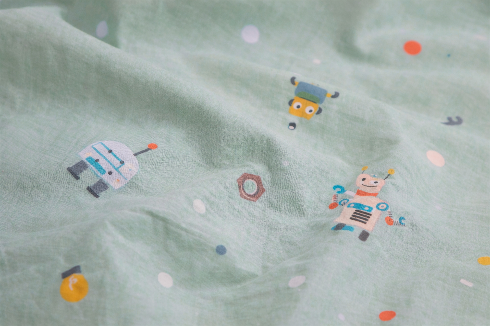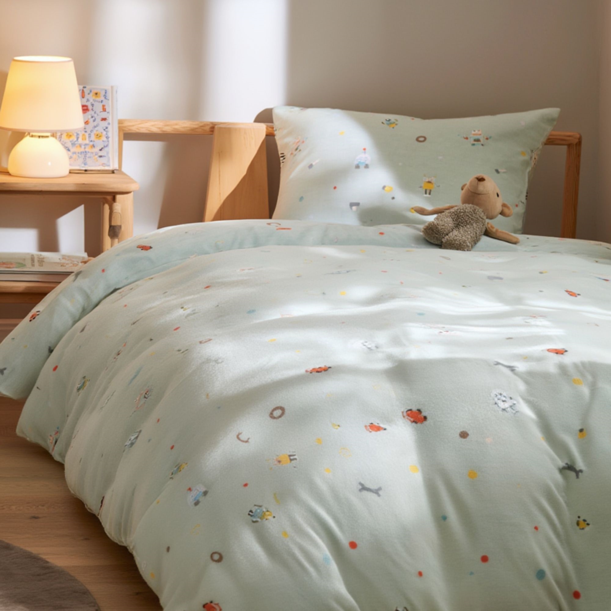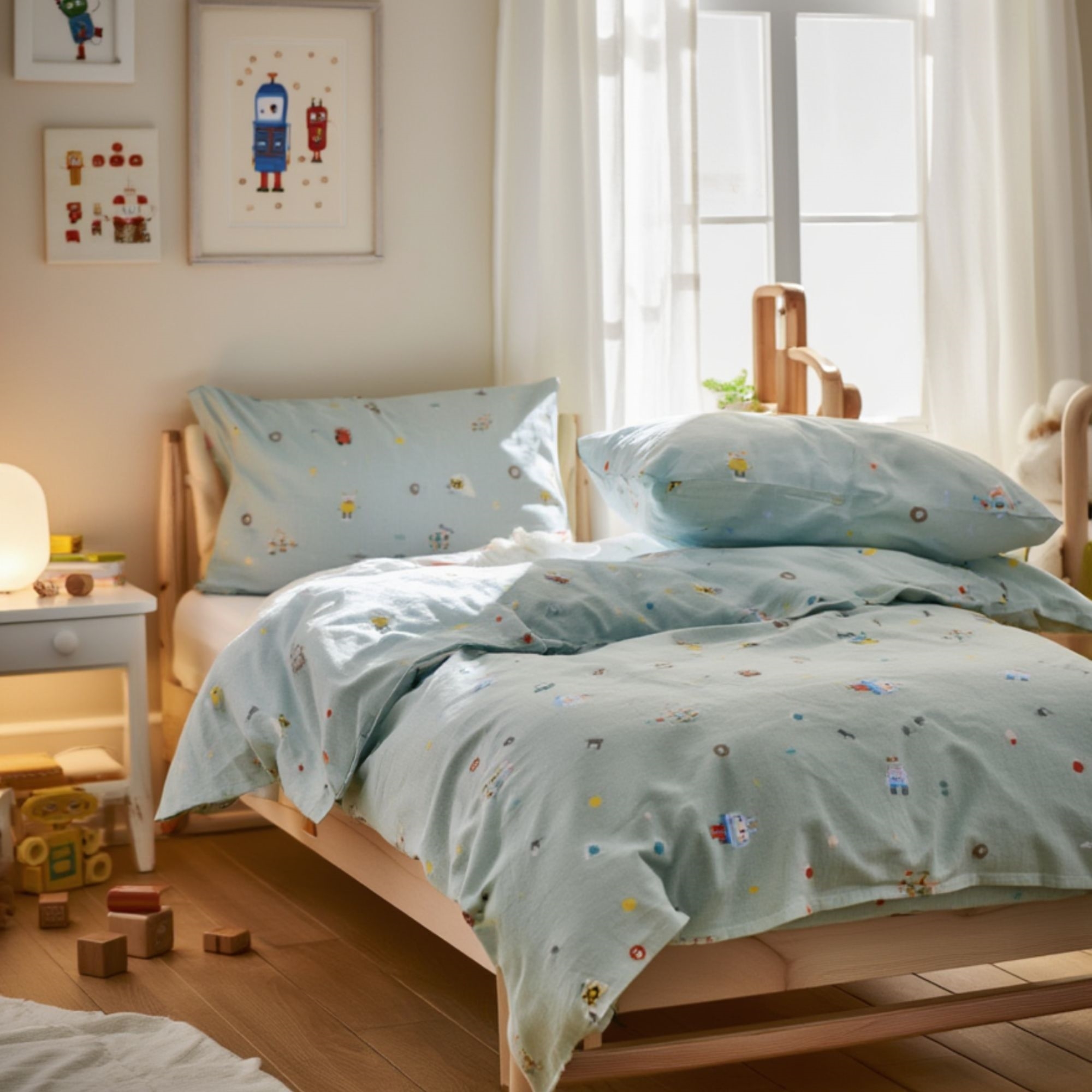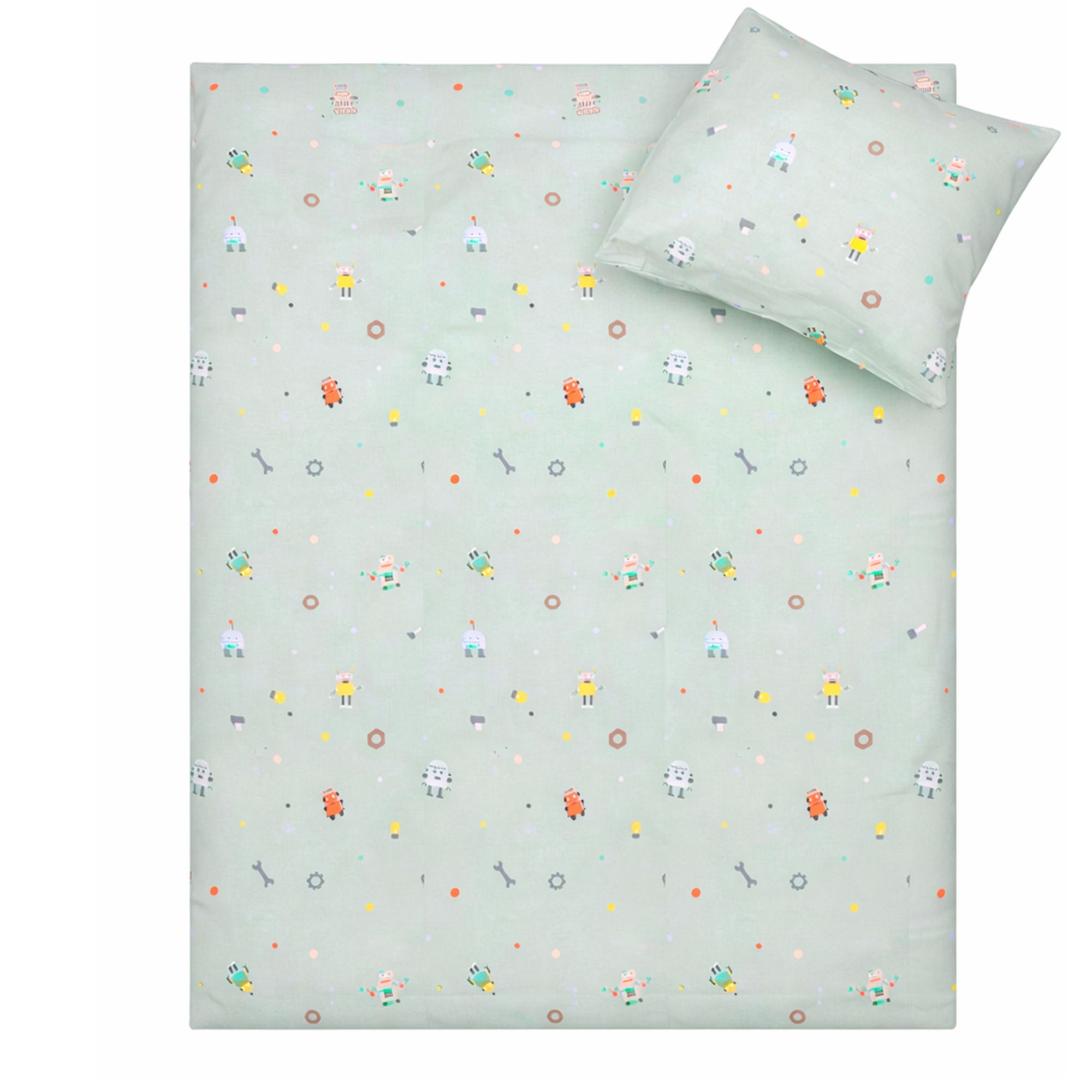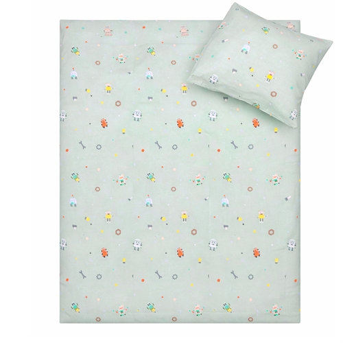 By Mats junior sengetøj 100x140 cm - Blågrønt med robotter