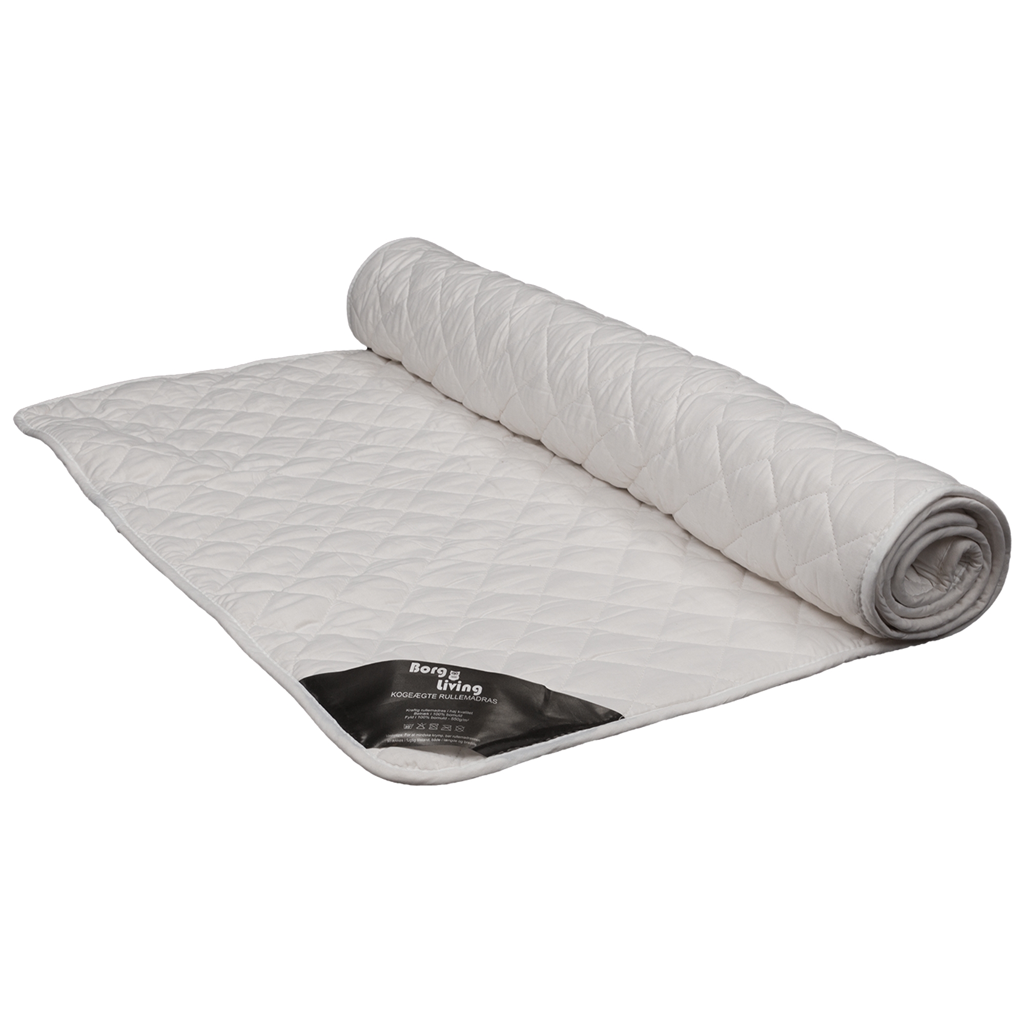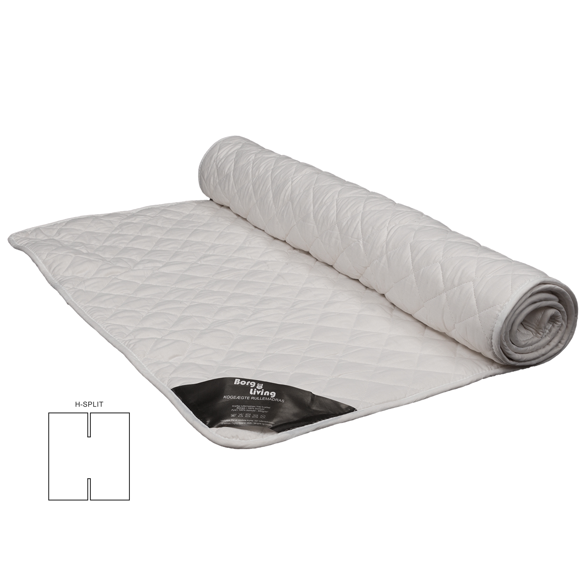 Forside » Top og rullemadrasser » Rullemadrasser Rullemadras H-Split - 180x210 cm - Kogeægte Bomuld - Borg Living Spar35% Borg Living 999,95649,95DKKSpar 350,- Gratis fragt på denne varePå lager Trustpilot Vælg størrelse Vælg variant Antal Læg i kurv Se mere fra: Borg Living Artikelnummer: BL422 Læs vores rullemadras guide Se vores store udvalg af ekstra lange lagner Se vores udvalg af topmadrasser Har du spørgsmål til produktet? Åndbart og allergivenligBlødt bomuldOEKO-TEX® certificeret Størrelse: 180x210 cm H-Split Split: 2x 90 cm Højde: ca. 1 cm Fyldvægt: 550 g pr. m² Fyldmateriale: 100% Quiltet bomuld Betræk: 100% Bomuld Elastik: Ja Vask: 95° - Kogeægte Certificering: STANDARD 100 by OEKO-TEX® (SHHO 053669) Borg Living rullemadras Borg Livings kogeægte rullemadras er i høj kvalitet. Rullemadrassen passer til en madras eller topmadras. Formålet med en rullemadras er, at skåne din madras og/eller topmadras mod fugt, snavs og bakterier, derfor kaldes en rullemadras oftest også for en madrasbeskytter eller skånemadras. Rullemadrassen er udstyret med elastikker i hjørnerne, der sikrer, at den forbliver fast på din topmadras. Dette forhindrer rullemadrassen i at glide eller rulle sammen, hvilket sikrer en ubrudt og rolig søvn. Kogeægte bomuld har en god holdbarhed og kan modstå høje vasketemperaturer. Det er blødt, åndbart og allergivenligt, hvilket sikrer en behagelig og sund søvn. Rullemadrassen kan krympe efter vask (5-9%), det er derfor vigtigt, at strække ud i rullemadrassen under tørring Se H-Split lagner her OEKO-TEX certificering Rullemadrassen er certificeret med STANDARD 100 by OEKO-TEX® (SHHO 053669). Dette certifikat sikrer, at rullemadrassen er fri for skadelige stoffer og er sikker at bruge. Det betyder, at du kan sove trygt og sikkert hver nat. Det danske brand Borg Living producerer eksklusive serier af dyner, puder og boligtekstiler til dit hjem. Brandet som er etableret i 2013 og er bl.a. kendt for deres nytænkning indenfor kvalitet og design. Borg Livings fantastiske produkter, bidrager til en optimal og behagelig nattesøvn samt udsmykker dit hjem med moderne og lækkert boligtilbehør. Se H-Split topmadrasser her Tilbage til Rullemadrasser Måske er du også interesseret i: Kuvertlagen med H-split 2x90x210 cm - Splitlængde 60 cm - Hvid - 100% BomuldssatinKuvert - Hvidt 100% bomuldssatin 180x210x8 cm Vejl. udsalgspris : 649,95 Spar : 100,00 749,95 DKK549,95 DKK