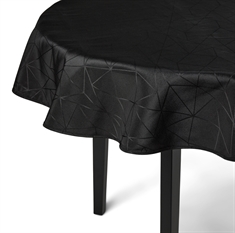 Nordstrand Home rund borddug i en fin og simpel sort farve, der beskytter dit bord og pynter til din opdækning. Denne damask dug er indvævet med et geometrisk mønster, kaldes også en jacquardvævning, sammen skabes et flot, og rolig, mønster i dugen, samt en fin og glat overflade med et elegant finish. Den runde borddug er også rigtig praktisk, da den er strygefri og behandlet med en anti-pletbelægning. Denne runde dug anbefales til runde borde med en diameter på helt op til max 160 cm, for det pæneste nedfald. For at borddugen ligger sig pænest, anbefaler vi at du har min. 20 cm til at hænge løst hele vejen rundt.