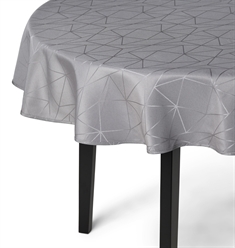 Nordstrand Home rund borddug i en fin og simpel grå farve, der beskytter dit bord og pynter til din opdækning. Denne damask dug er indvævet med et geometrisk mønster, kaldes også en jacquardvævning, sammen skabes et flot, og rolig, mønster i dugen, samt en fin og glat overflade med et elegant finish. Den runde borddug er også rigtig praktisk, da den er strygefri og behandlet med en anti-pletbelægning. Denne runde dug anbefales til runde borde med en diameter på helt op til max 210 cm, for det pæneste nedfald. For at borddugen ligger sig pænest, anbefaler vi at du har min. 20 cm til at hænge løst hele vejen rundt.
