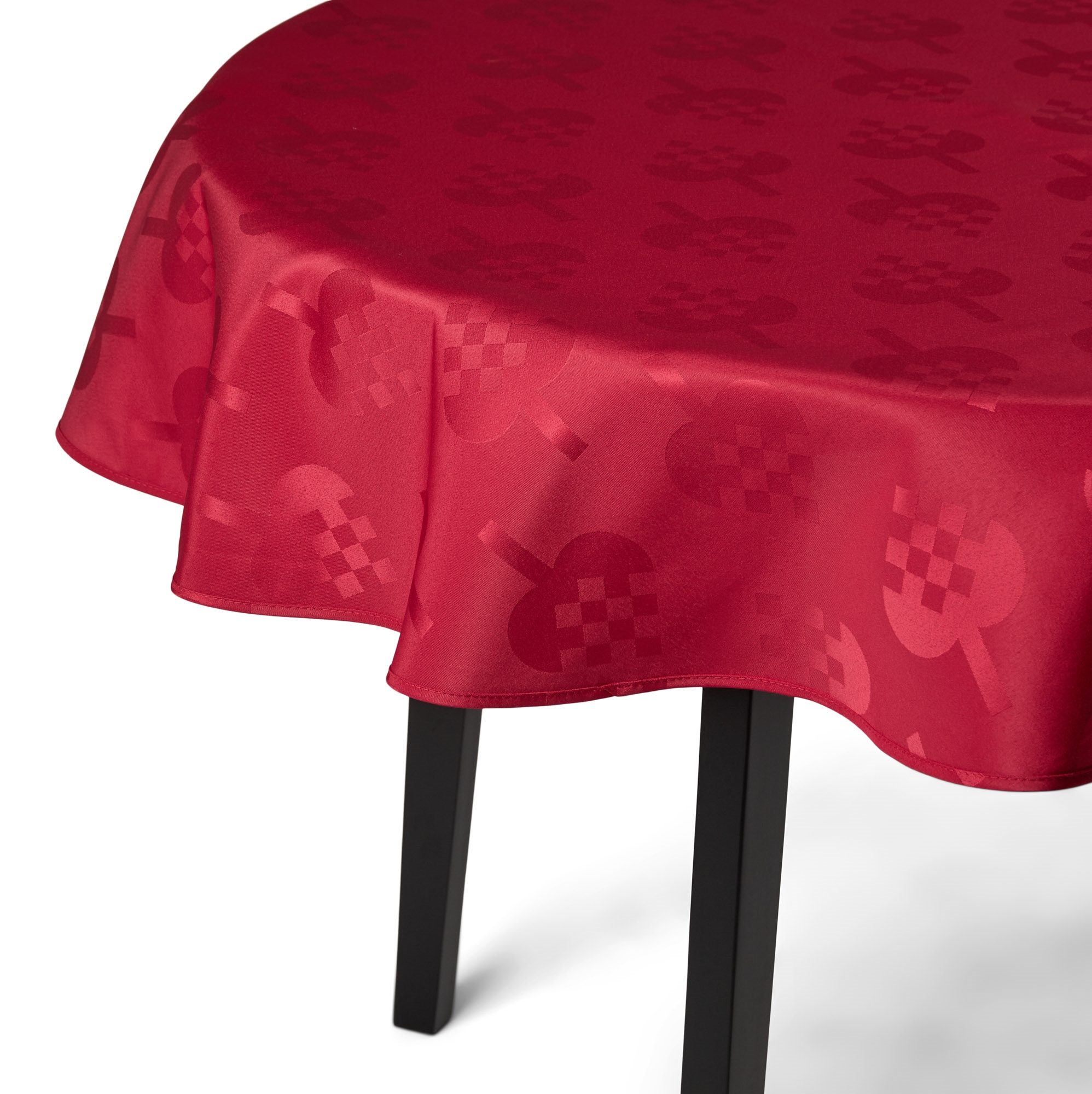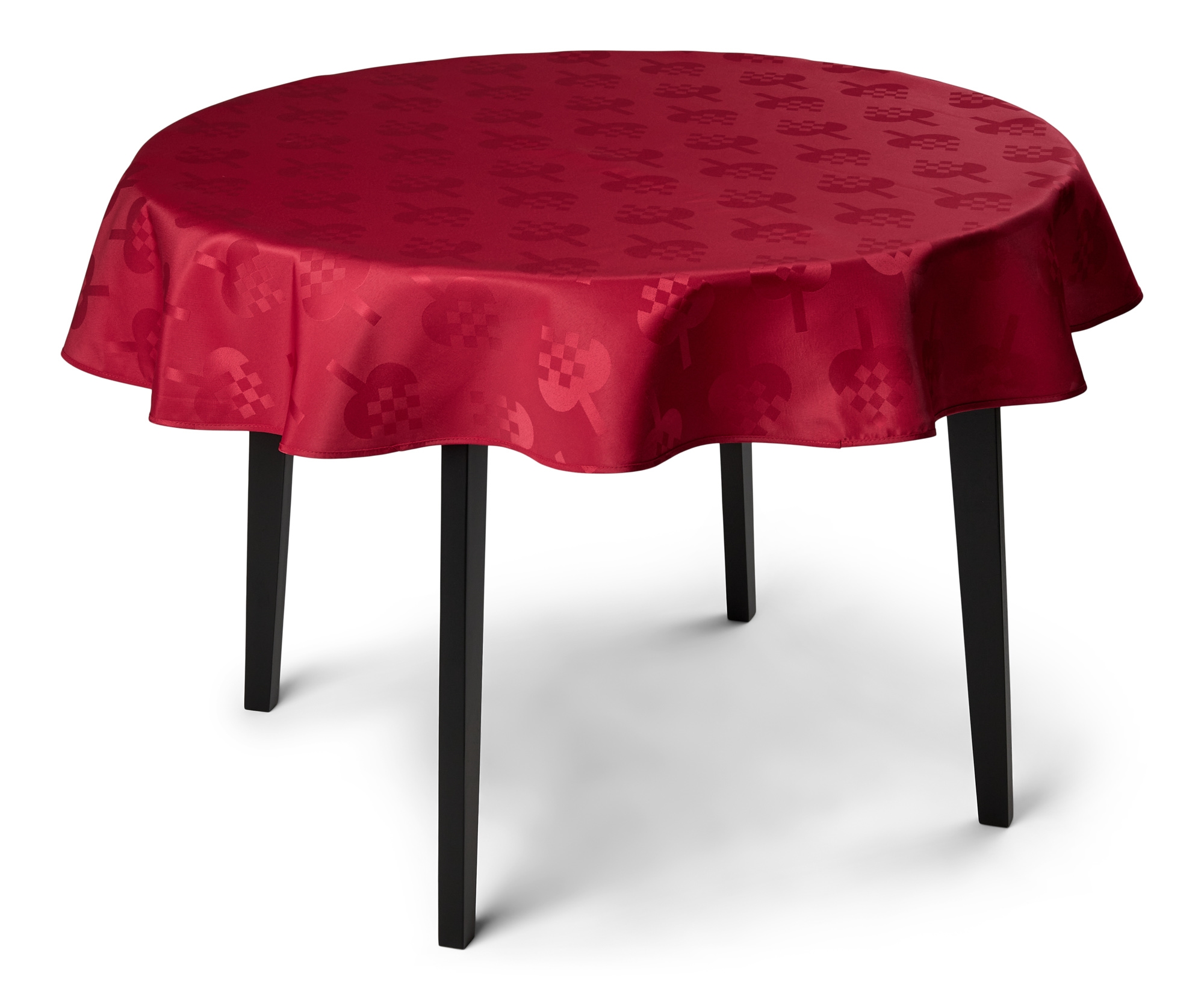 Nordstrand Home rund borddug - en klassisk og flot juledug, der beskytter dit bord og pynter til din opdækning. Denne damask dug er indvævet med et mønster, kaldes også en jacquardvævning, sammen skabes et flot, og rolig, mønster i dugen, samt en fin og glat overflade med et elegant finish. Den runde borddug er også rigtig praktisk, da den er strygefri og behandlet med en anti-pletbelægning. Denne runde dug anbefales til runde borde med en diameter på helt op til max 120 cm, for det pæneste nedfald. For at borddugen ligger sig pænest, anbefaler vi at du har min. 20 cm til at hænge løst hele vejen rundt.