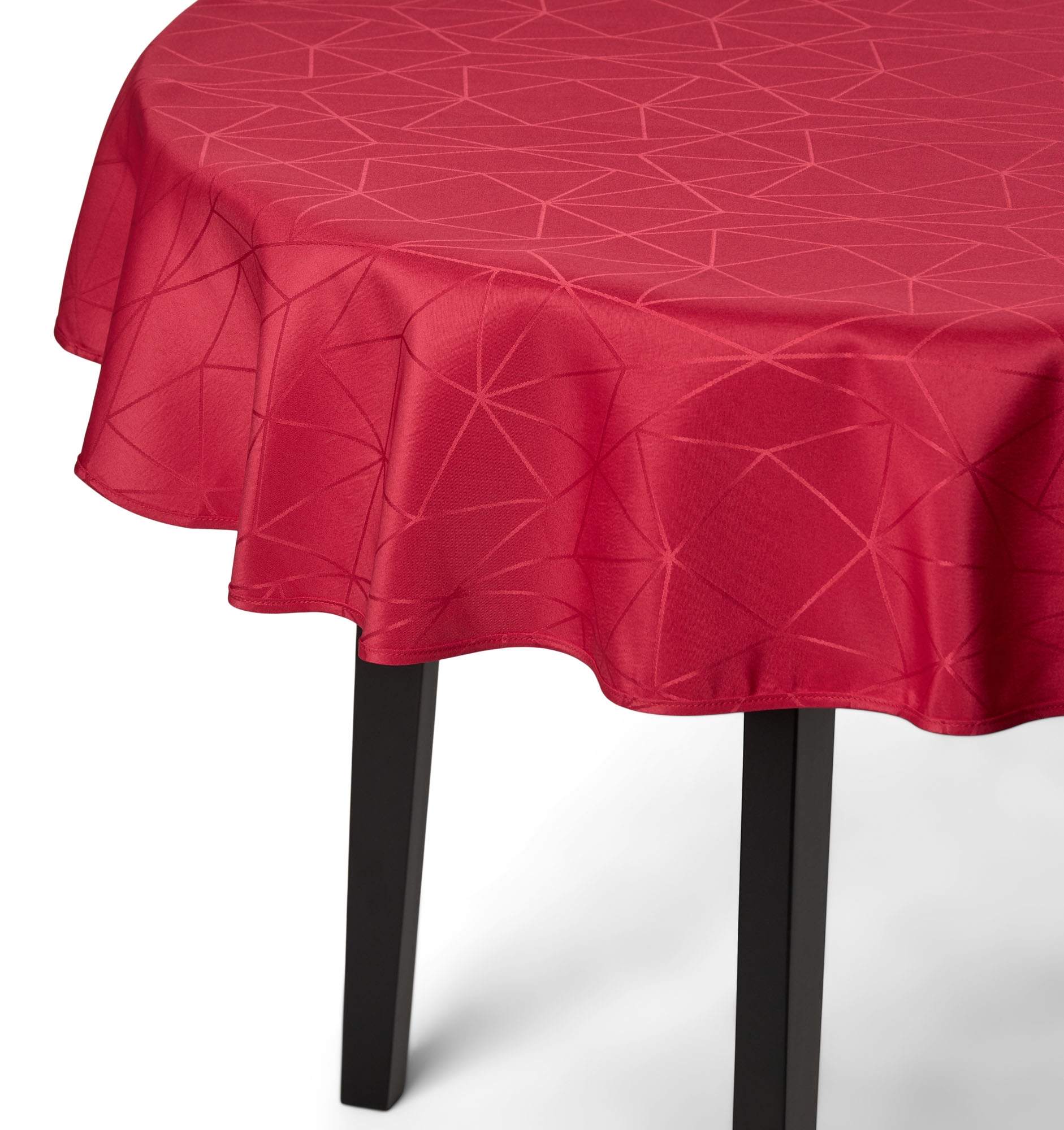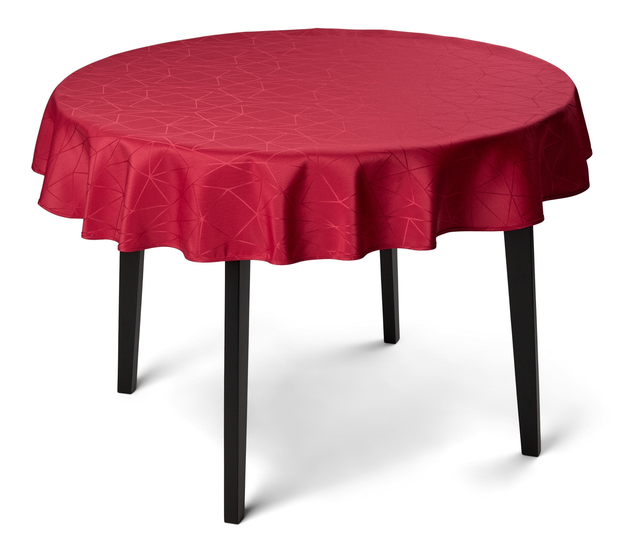 Nordstrand Home rund borddug - en klassisk og flot dug, der beskytter dit bord og pynter til din opdækning. Denne damask dug er indvævet med et geometrisk mønster, kaldes også en jacquardvævning, sammen skabes et flot, og rolig, mønster i dugen, samt en fin og glat overflade med et elegant finish. Den runde borddug er også rigtig praktisk, da den er strygefri og behandlet med en anti-pletbelægning. Denne runde dug anbefales til runde borde med en diameter på helt op til max 120 cm, for det pæneste nedfald. For at borddugen ligger sig pænest, anbefaler vi at du har min. 20 cm til at hænge løst hele vejen rundt.