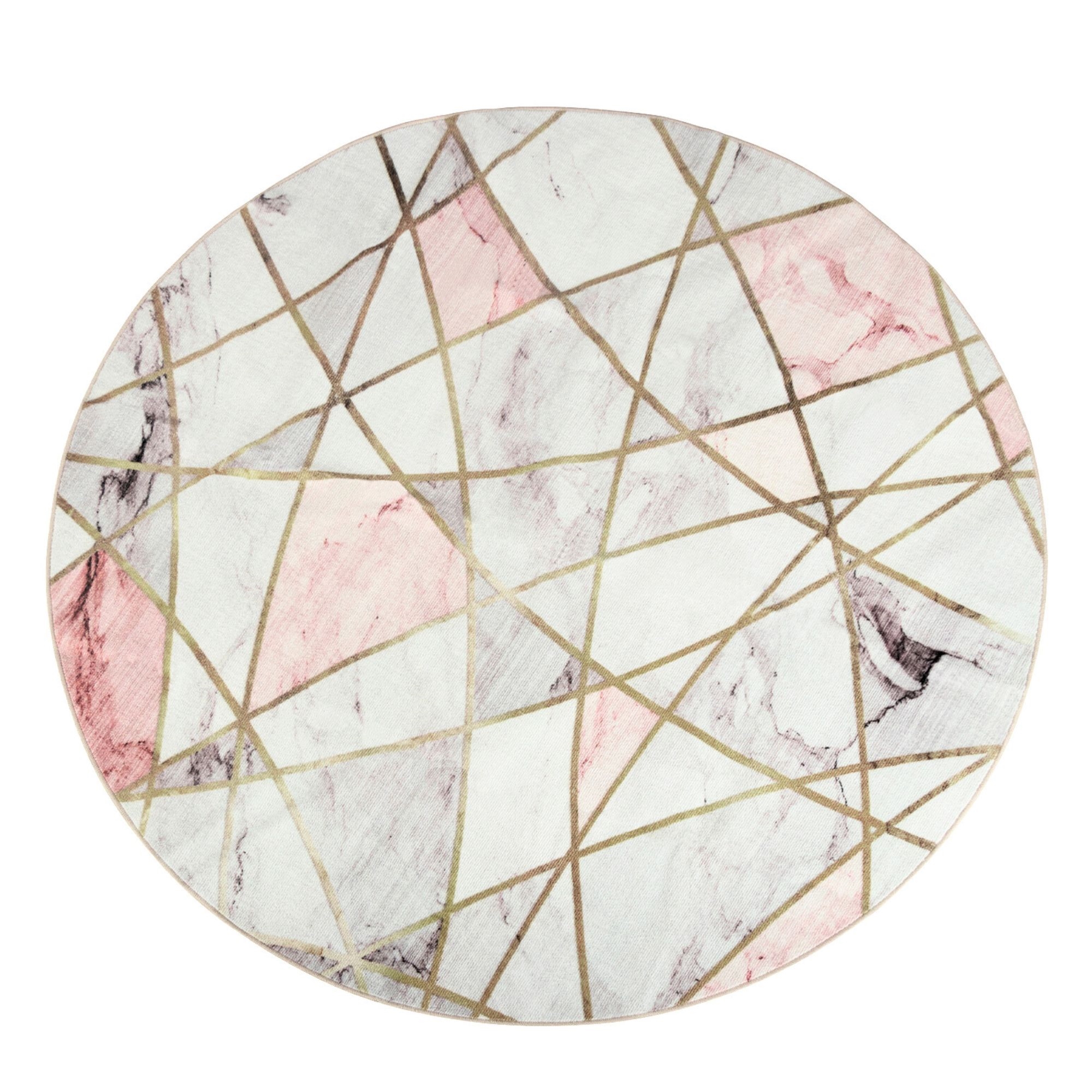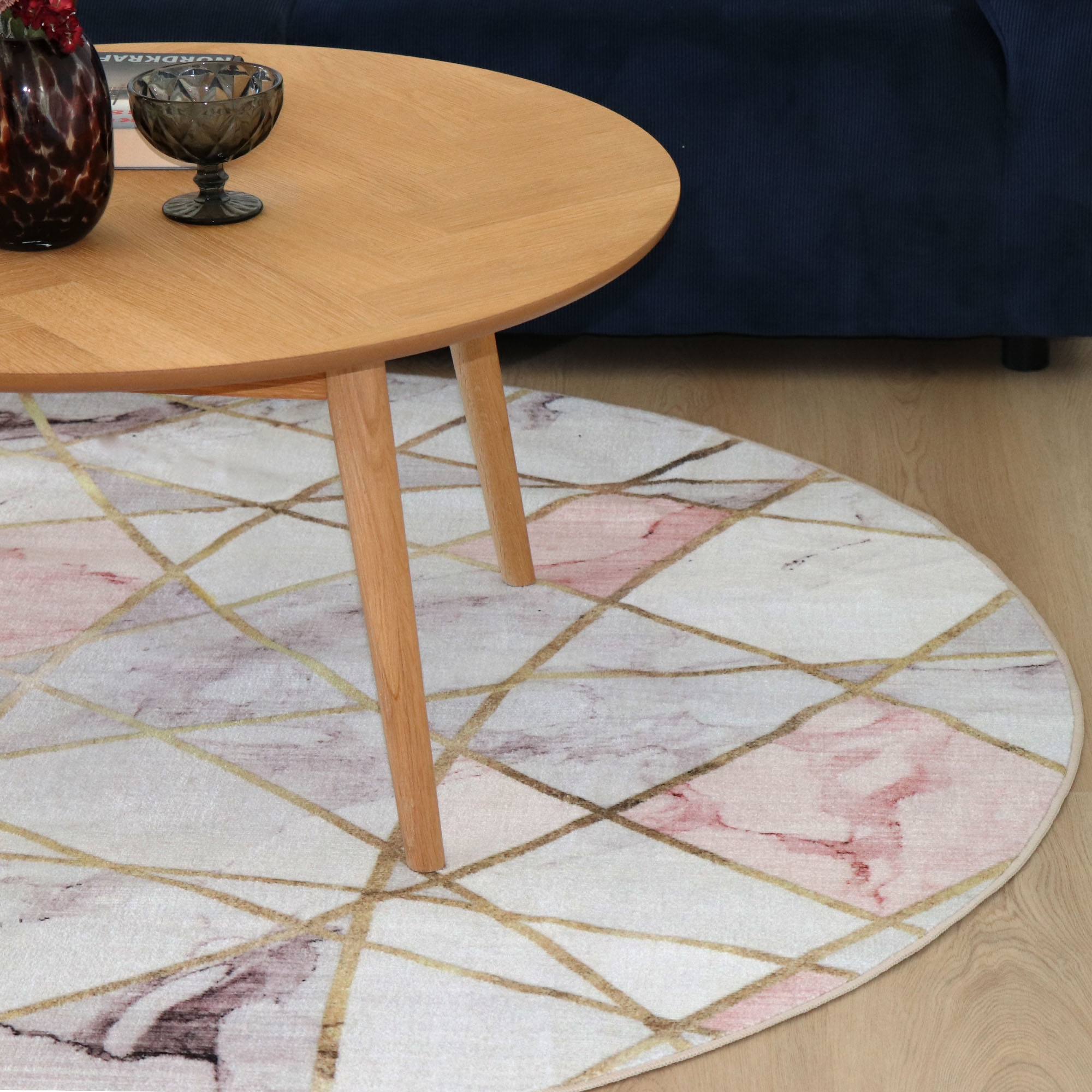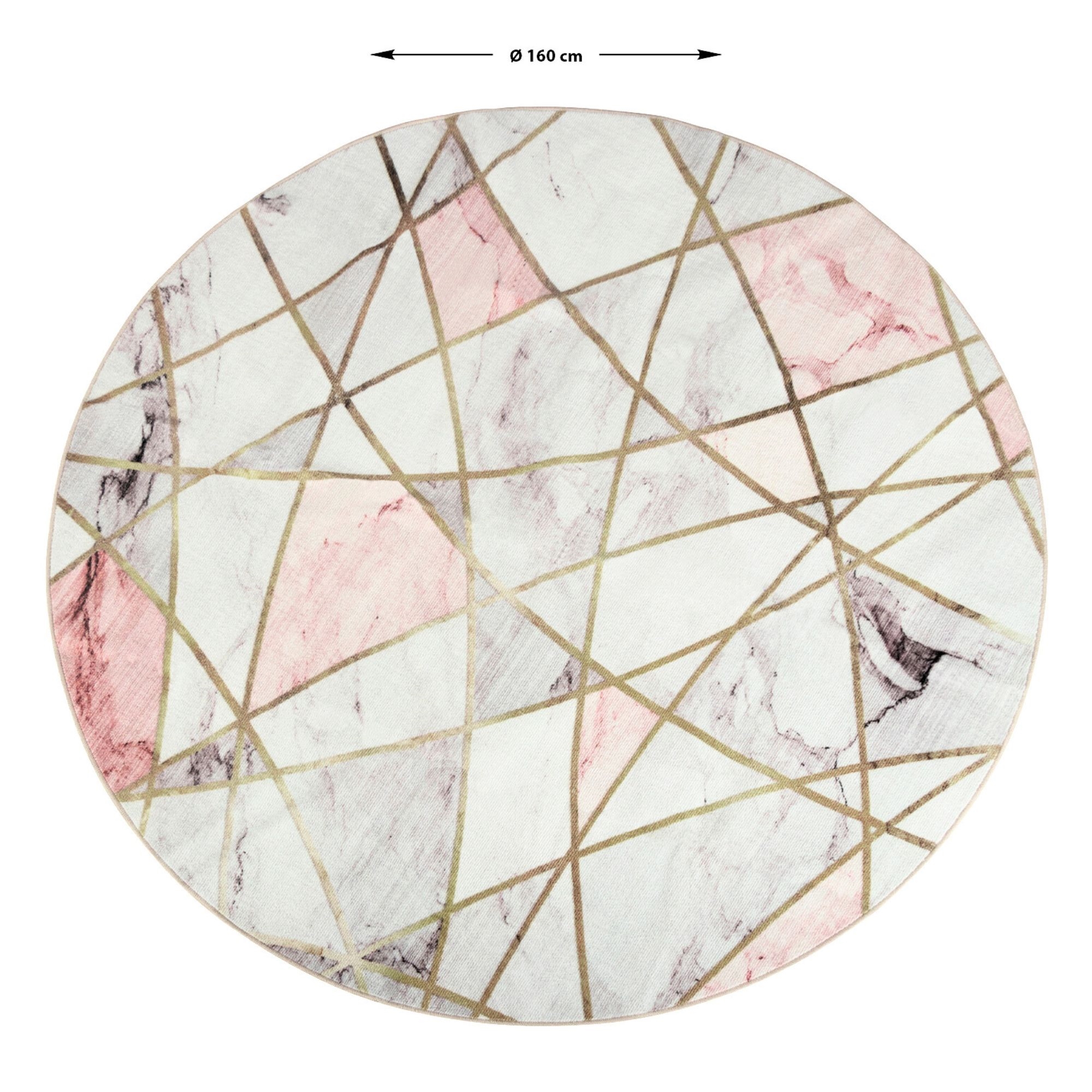 Stort gulvtæppe med en diameter på 160 cm, passer perfekt i størrelsen som tæppe under spisebordet af samme form. Dette tæppe design skiller sig ud fra mængden, med sit flotte grafiske marmor mønster i skønne farver. Med en god kombination af iøjefaldende design og rolig farvekombination, blender gulvtæppet let ind i din indretning. Det fine tæppe kan pifte ethvert rum op, med lidt varme under fødderne forenden af sengen til de kolde morgenstunder, som tæppe under spisebordet eller et dekorativt gulvtæppe til stuen - det løse tæppe kan også let flyttes, hvis det en dag passer bedre ind et andet sted i din bolig, hvilket gør det til alsidig og dekorativ løsning.