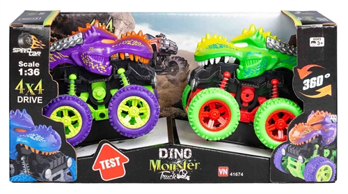 Forside » Legetøj » Forårsleg Sæt med 2 dino-monstertrucks - Grøn og lilla - Actionfyldt leg HOME-TEX Skarp pris: 99,95DKK Få på lager Trustpilot Antal Læg i kurv Se mere fra: HOME-TEX Artikelnummer: LEG-VN41674-B Har du spørgsmål til produktet? 2 robuste monstertrucks med sejt dino-design og friktionsdriftKører med et enkelt skub - ingen batterier nødvendigePerfekt til sjov og actionfyldt leg med biler og dinosaur-tema Actionfyldt leg med kraftige friktionsbiler Dette sæt indeholder 2 seje dino-monstertrucks i grøn og lilla med kraftig friktion, som gør dem ekstra sjove og nemme at bruge i aktiv leg. Bilerne kræver ingen batterier og kan køre afsted med et enkelt skub, hvilket gør legen hurtig og tilgængelig for børn. Kraftigt design og sejt dino-look Monstertrucksene er designet med et råt dinosaur-inspireret udtryk og store hjul, der giver et vildt og actionfyldt look. Det robuste design gør dem velegnede til både indendørs og udendørs leg, hvor der kan køres på forskellige underlag. Friktionsdrevet kørsel Den kraftige friktionsfunktion gør det nemt for barnet at få fart på bilerne uden brug af elektronik. Et skub er nok til at sende dem afsted, hvilket gør legen enkel, sjov og dynamisk. Perfekt til aktiv og fantasifuld leg Dino-monstertrucksene inviterer til masser af kreativ leg, hvor børn kan lave racerbaner, forhindringsbaner og vilde dino-eventyr. Sættet er ideelt til børn, der elsker fart, action og køretøjer. Tilbage til Forårsleg