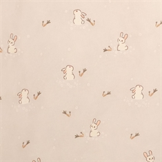 Betrækket er fremstillet i 100% blød bomuld, som føles behageligt og naturligt mod barnets hud. Det fine design i sand nuancer med kaniner giver et sødt og roligt udtryk i børneværelset.