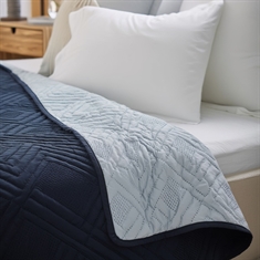 Sengetæppe - 140X240 cm - Vendbart Mørkeblå og lyseblå - Tæppe til enkelseng